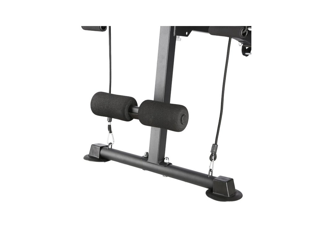 Pre väčšiu stabilitu sú stabilizátory lavice vybavené gumovými koncovkami, ktoré ju udržiavajú pevne na mieste. Na prednej nohe sú umiestnené slučky na pripevnenie dodávaných bungee šnúr na tréning rúk.