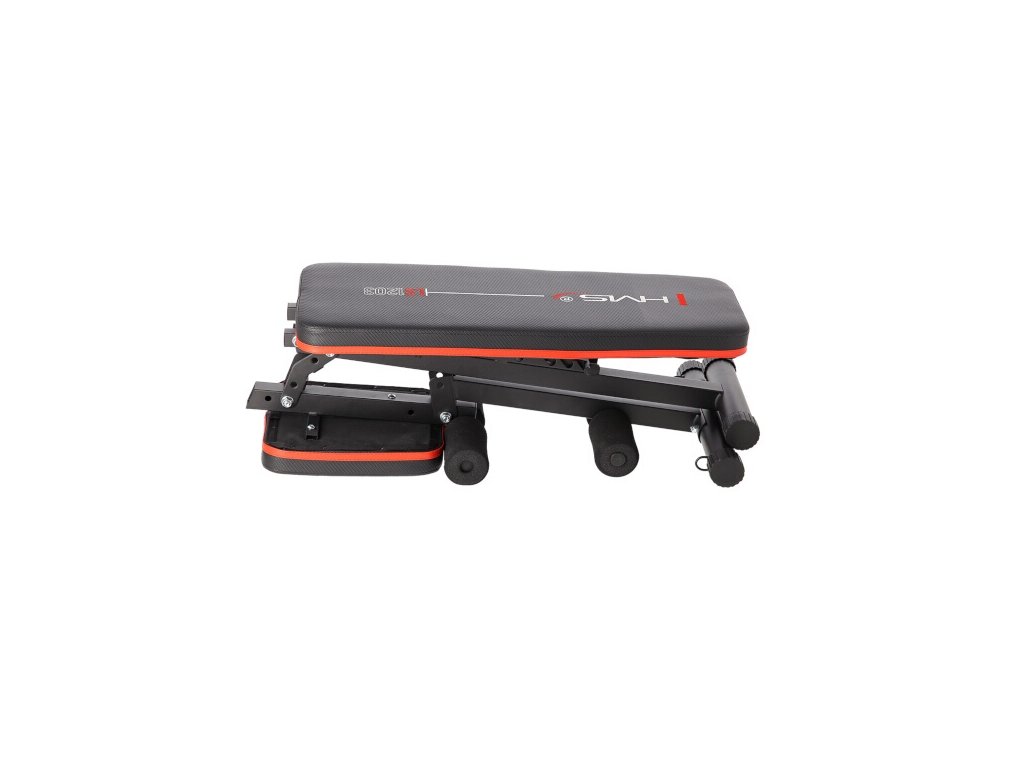 HMS LS1203 sa ľahko a rýchlo skladá. Po tréningu stačí vytiahnuť dva oceľové čapy z rámu lavice, a je pripravená na uloženie.
