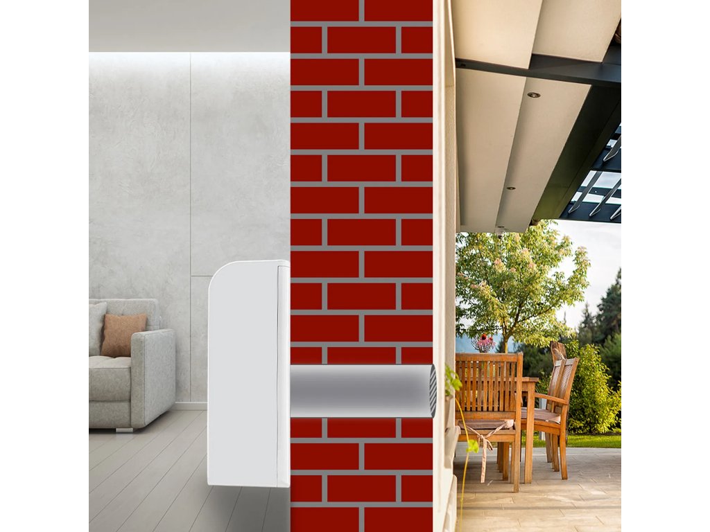 Moderná nástenná klimatizácia PAC-W 2200 S bez vonkajšej jednotky poskytuje rýchle chladenie počas horúcich letných dní, pričom nevyžaduje náročnú inštaláciu na fasádu budovy. Určená na vnútornú montáž, potrebuje len dva vetracie otvory (∅ 18 cm) na vonkajšej strane. Čerstvý vzduch je privádzaný dovnútra a teplo je odvádzané von.