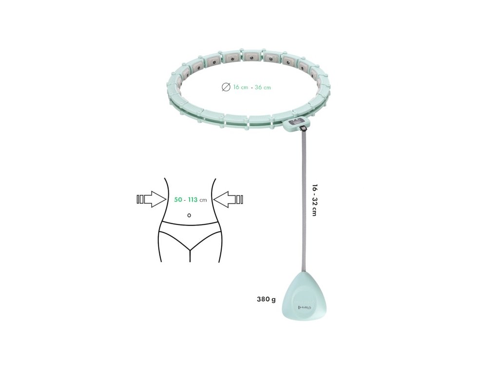 Dĺžka obruče sa nastavuje podľa obvodu pása tak, aby bola dostatočne voľná, ale neprepadávala cez boky. Po nastavení dĺžky sa obruč uzavrie. Potom sa závažie "hodí" v smere, ktorým budeme krútiť bokmi, a začneme cvičiť. Obruč HHM14 je na vnútornej strane vybavená magnetickými masážnymi výstupkami, ktoré príjemne masírujú oblasť pása. Magnety sú negatívne polarizované a ich magnetické pole má pozitívny vplyv na zrýchlenie metabolizmu. Intenzitu tréningu ovplyvňuje rýchlosť, akou krútime bokmi.