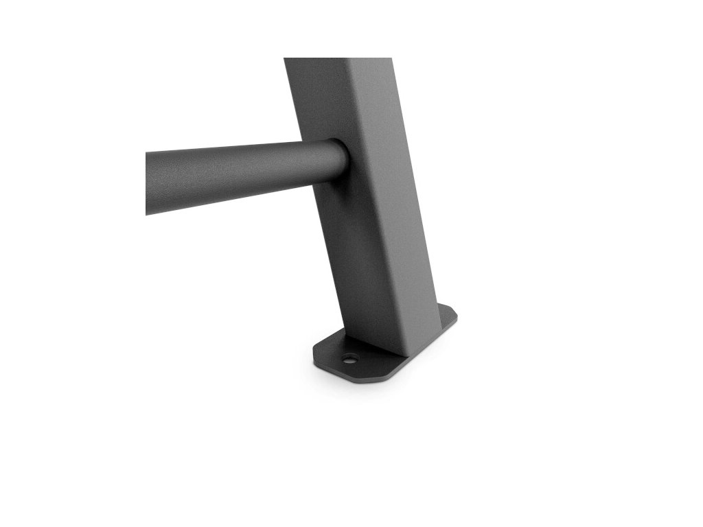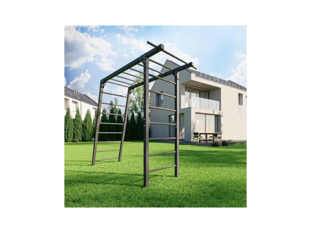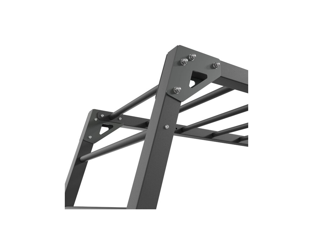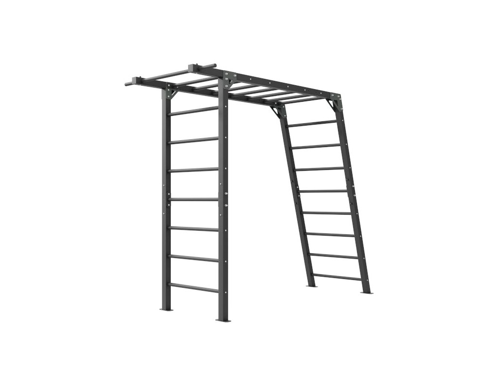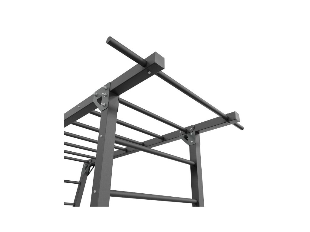 Stabilita: Pevné spoje a široká základňa zaisťujú stabilitu aj pri intenzívnom používaní. Rebriny sú vo zvislej polohe a majú výšku 210 centimetrov a 8 priečok. Priečky sú od seba vo vzdialenosti 26 cm a majú priemer 3 cm. V úrovni poslednej priečky sa nachádza predsunutá hrazda so šírkou 121 cm. Túto stranu konštrukcie je možné využiť na širokú škálu cvikov, možno na ňu pripevniť aj tréningové gumy alebo závesný posilňovací systém. Z druhej strany konštrukcie sa nachádza šikmý a horizontálny rebrík, ktorý nájde ideálne využitie ako preliezačka pre deti.