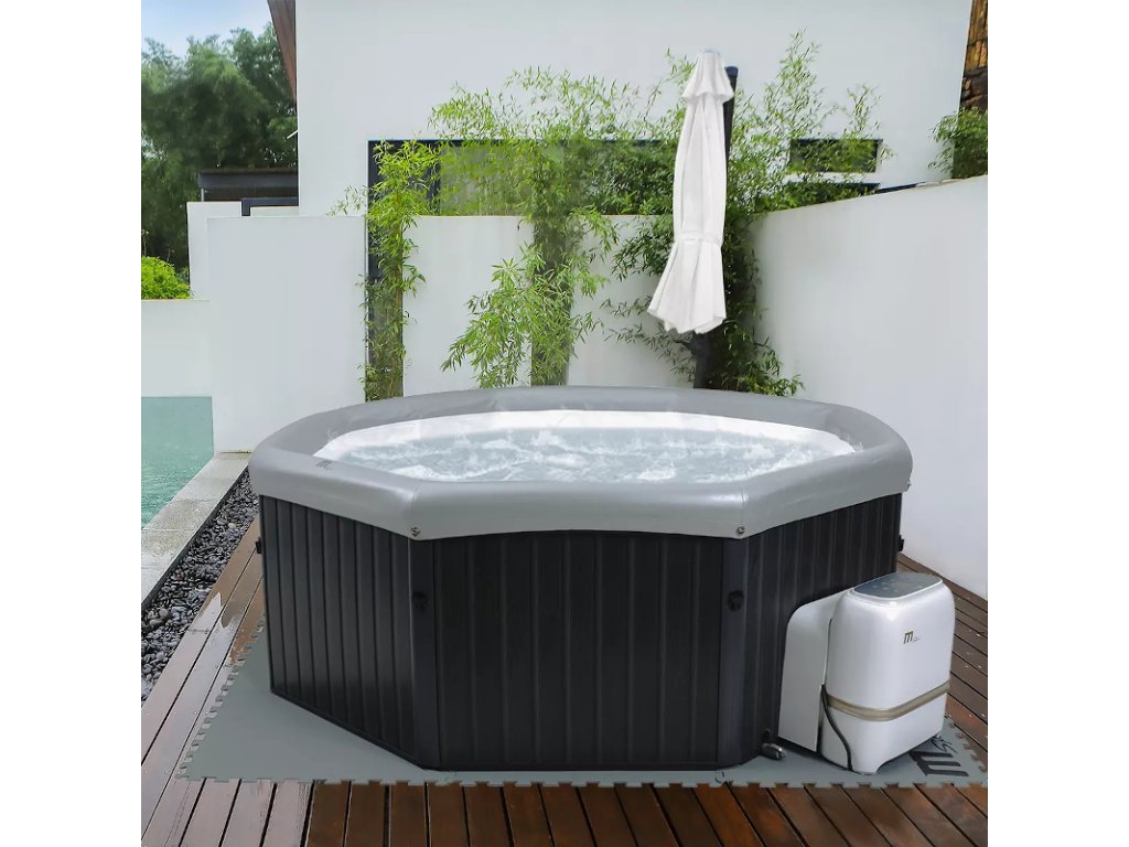 Umiestnite svoju záhradnú vírivku na mäkkú a odolnú podložku k bazénu a užite si extra polstrovanie na podlahe. To vám umožní postaviť bazén na kameň, betón alebo štrk bez obáv z poškodenia.