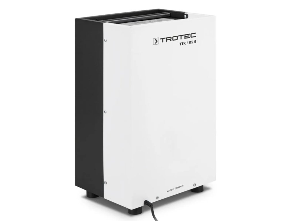 Odvlhčovač TTK 105 S je vyrobený v Nemecku. So svojou maximálnou odvlhčovacou kapacitou 30 litrov za deň je vhodný najmä pre miestnosti s rozlohou zhruba do 90 m² a objemom do 230 m³.