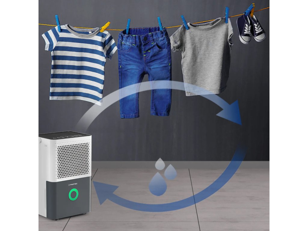 Optimálne regulovaná vlhkosť vzduchu v miestnosti v rozmedzí 40 až 60 % účinne zabraňuje tvorbe plesní a hniezd vlhkosti a znižuje rast alergénov a roztočov. Okrem toho odnímateľný a ľahko čistiteľný vzduchový filter filtruje plávajúci prach a zvieracie chlpy zo vzduchu v miestnosti. Ako mobilný odvlhčovač s praktickou rukoväťou na prenášanie zlepšuje kvalitu vzduchu a zabezpečuje lepšiu vnútornú klímu.