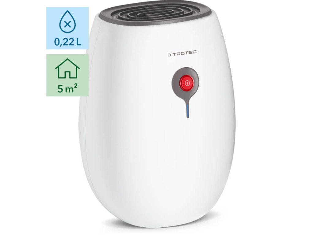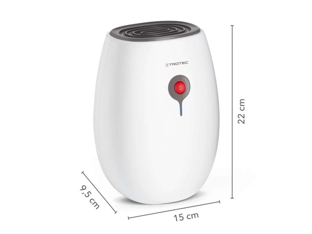 S kapacitou odvlhčovania približne 220 ml možno spoľahlivo vysušiť miestnosti do 5 m². Vďaka svojmu jednoduchému, elegantnému dizajnu a špeciálnej kompaktnosti sa TTP 2 E hodí do každého obytného a pracovného prostredia. TTP 2 E odstraňuje prebytočnú vlhkosť zo skríň na oblečenie a obuv, komôr na potraviny alebo v niektorých prípadoch aj z malých sanitárnych miestností bez okien. Znižuje kondenzáciu a tým zabraňuje tvorbe plesní.