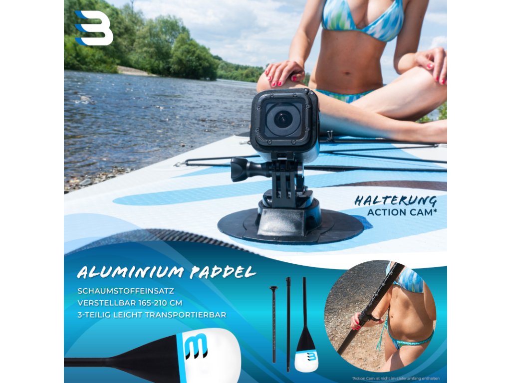 Bluemarina Stand Up Paddle Board Mapuna je vybavená robustným zariadením pre uchytenie Action-Cam . Pomocou neho ľahko pripevníte na dosku kameru, ktorá je vhodná na použitie na vode.