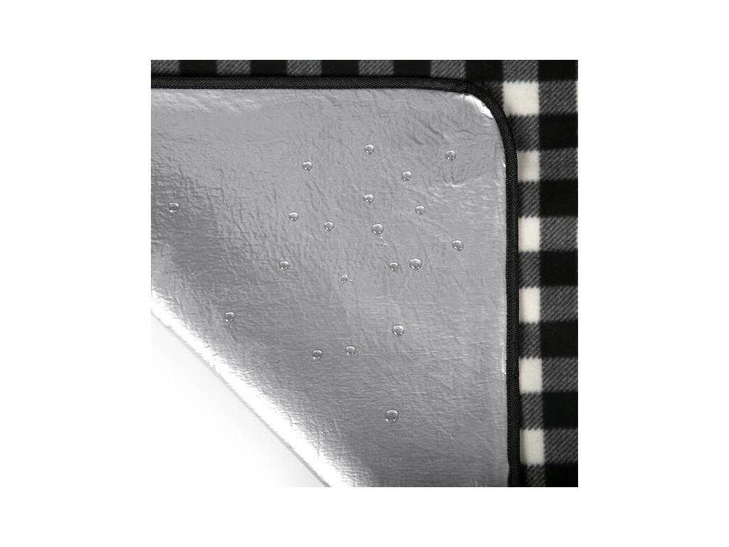 Materiál je na dotyk príjemný fleece. Spodná vrstva je vyrobená z hliníkovej fólie opatrené vodeodolnou úpravou, ktorá tak chráni pred vlhkom a chladom napríklad od mokrej trávy. Pre ľahké prenášanie možno deku zložiť do malej "tašky" vybavené uchom a popruhom cez rameno.