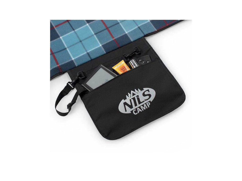 Materiál je na dotyk príjemný fleece. Spodná vrstva je vyrobená z hliníkovej fólie opatrené vodeodolnou úpravou, ktorá tak chráni pred vlhkom a chladom napríklad od mokrej trávy. V každom rohu sa nachádza praktické očko na pripevnenie deky k podkladu pomocou stanových kolíkov, deka sa potom nezhrňuje a aj vo vetre leží na svojom mieste. Pre ľahké prenášanie možno deku zložiť do malej "tašky" vybavené uchom a popruhom cez rameno.
