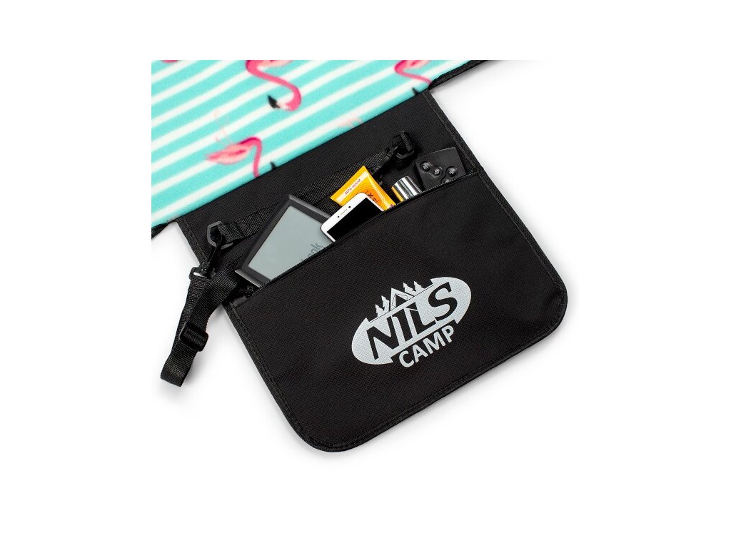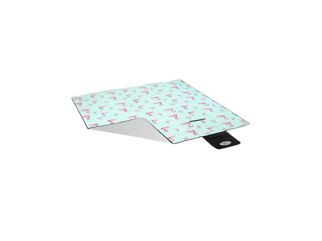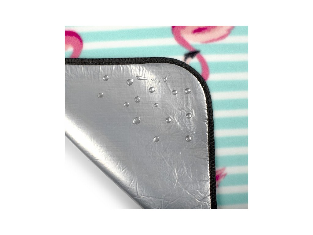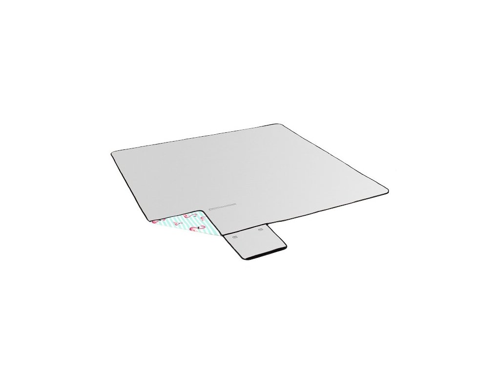 Materiál je na dotyk príjemný fleece. Spodná vrstva je vyrobená z hliníkovej fólie opatrené vodeodolnou úpravou, ktorá tak chráni pred vlhkom a chladom napríklad od mokrej trávy. V každom rohu sa nachádza praktické očko na pripevnenie deky k podkladu pomocou stanových kolíkov, deka sa potom nezhrňuje a aj vo vetre leží na svojom mieste. Pre ľahké prenášanie možno deku zložiť do malej "tašky" vybavené uchom a popruhom cez rameno.