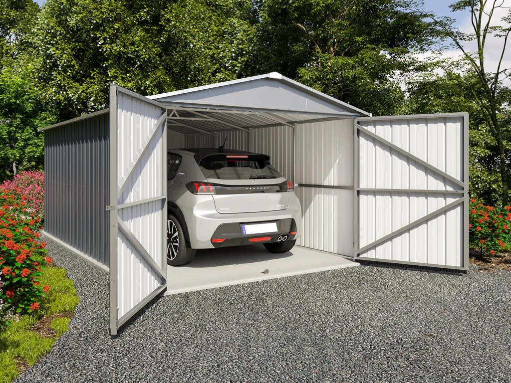 Garáž vhodná na uskladnenie vozidiel. Vďaka pozinkovanej konštrukcii nie je potrebná žiadna údržba.