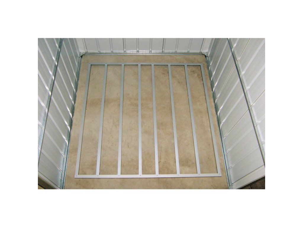 Podlahová konštrukcia pre záhradný domček o rozlohe 3,69 m2. Vyrobená z pozinkovanej ocele vysokej pevnosti. Oceľová podkladová konštrukcia YardMaster sa odporúča, ak potrebujete zvýšiť vnútornú podlahu pre váš záhradný domček. Podlahový nosný rám sa inštaluje do vnútra domčeka po ukončení výstavby.