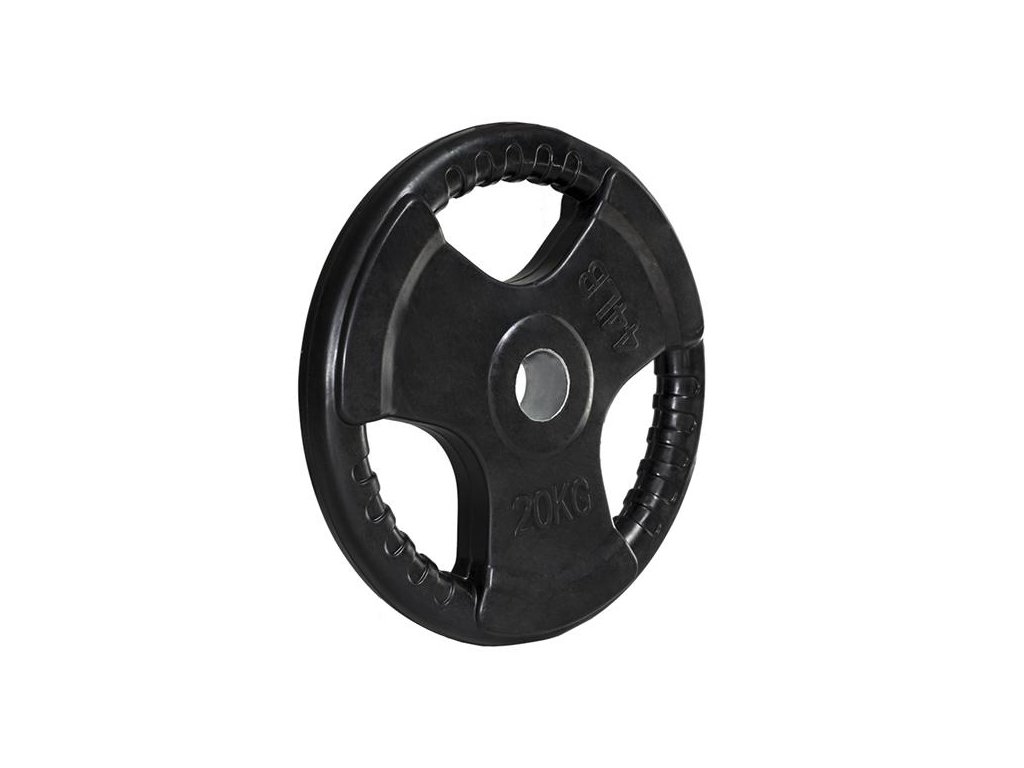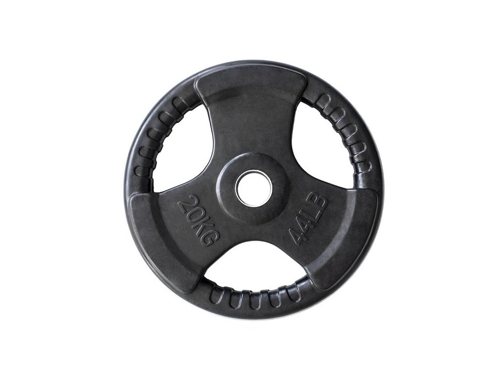 Olympijský, pogumovaný kotúč HMS Tri-grip je známkou kvality a precízneho prevedenia. Tento tanier má otvor s priemerom 50 mm, je teda vhodný pre všetky typy olympijských tyčí. Závažie disponuje tromi držadlami pre jednoduchú manipuláciu a pogumovaný povrch predlžuje jeho životnosť.