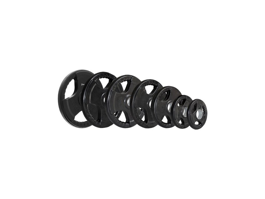 Kotúč HMS Tri-grip má otvor s priemerom 50 mm, čo ho robí vhodným pre všetky typy olympijských osí. S tromi držadlami pre jednoduchú manipuláciu a pogumovaným povrchom, ktorý zvyšuje jeho životnosť, je tento kotúč ideálnou voľbou pre každého športovca.
