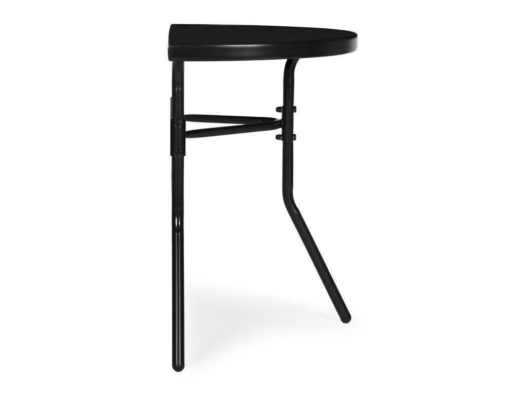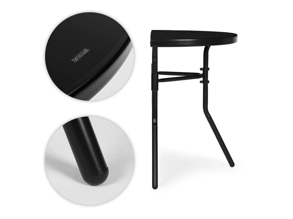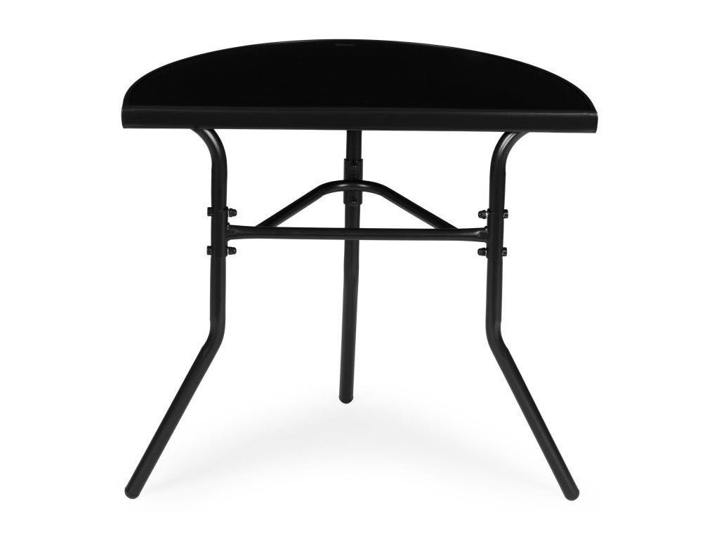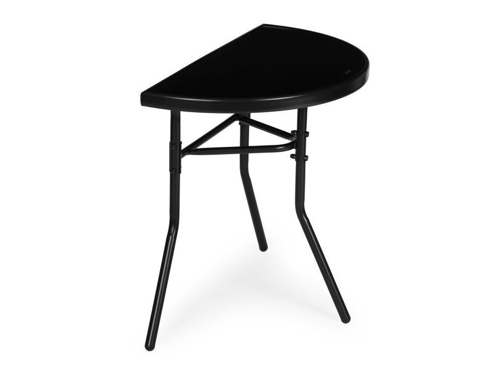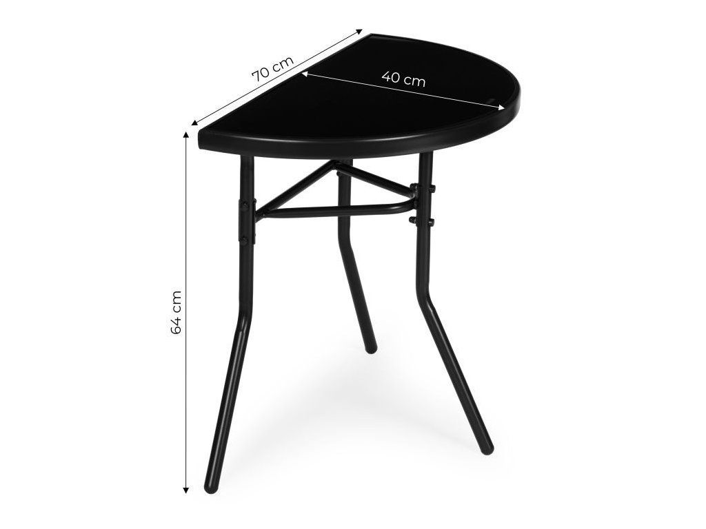 Tento funkčný záhradný stôl od MultiGarden je určený na použitie na balkónoch, terasách a v záhrade. Jeho polkruhová doska umožňuje umiestnenie priamo k stene, čím šetrí miesto a je ideálny do menších priestorov. Doska stola s rozmermi 70 x 40 cm je vyrobená z tvrdeného skla, ktoré je vysoko odolné voči poškodeniu a poveternostným vplyvom. Dodatočný čierny rám chráni okraje dosky stola a umocňuje celkový estetický dojem. Rám stola je vyrobený z práškovo lakovaných oceľových profilov, ktoré poskytujú ochranu pred vlhkosťou a koróziou. Konštrukcia je vystužená spojkou, ktorá zvyšuje stabilitu počas používania. Nohy sú vybavené protišmykovými nožičkami, ktoré chránia povrch podlahy pred poškriabaním a zlepšujú priľnavosť.