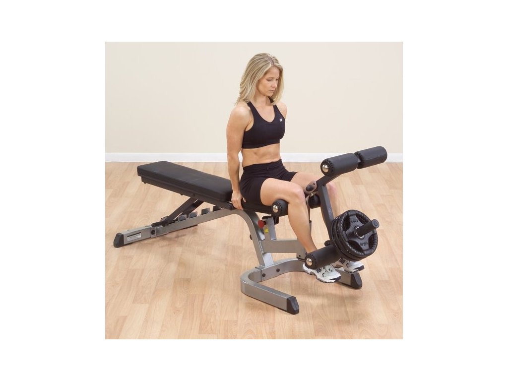Polohovacia lavička Body-Solid GFID71 sa dodáva bez voliteľného príslušenstva Opierka pre biceps Body-Solid GPCA1, Posilňovač nôh Body-Solid GLDA3 a Horná kladka Body-Solid GLRA81.