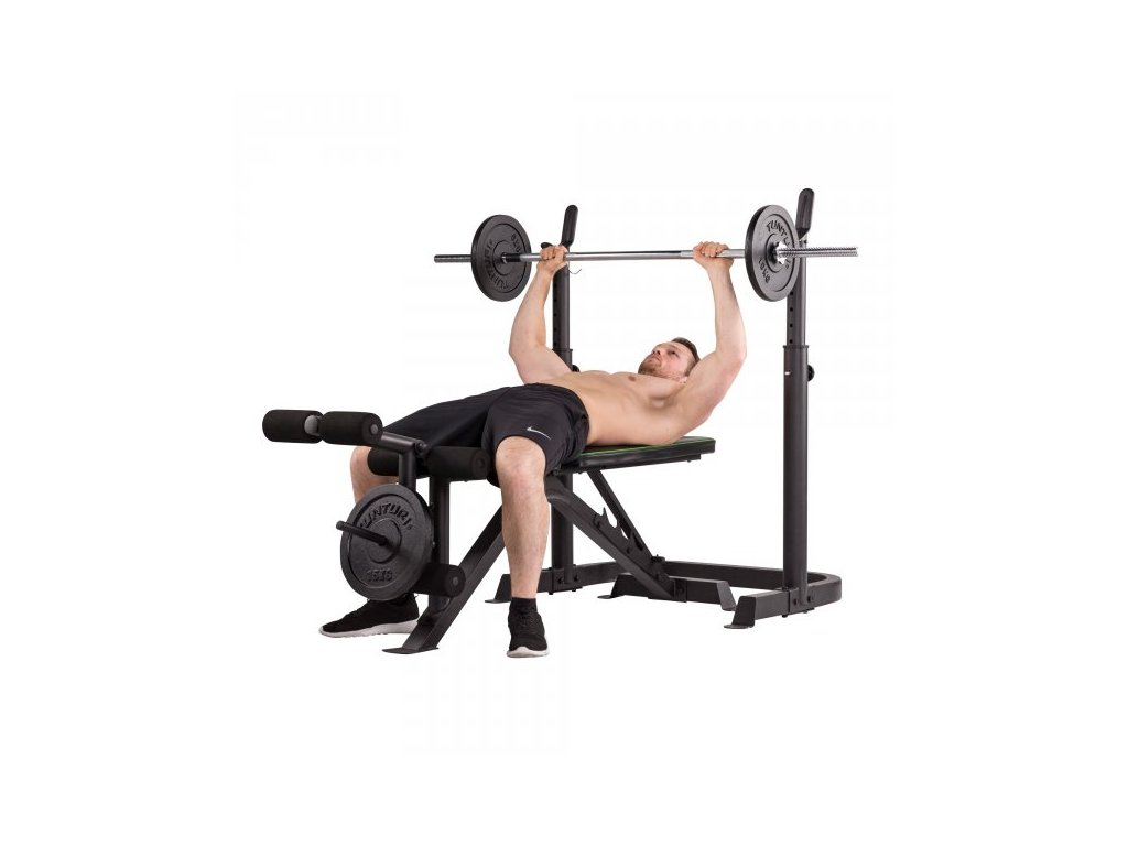 Posilňovacia lavica so stojanom na činku a bicepsovým pultom