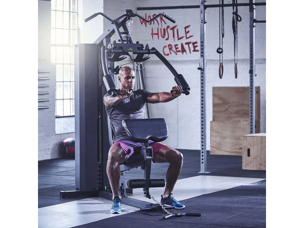 Silová stanica adidas Performance Home Gym je ideálnym riešením, ak hľadáš kompaktnú silovú stanicu na domáce použitie. Vďaka množstvu tréningových staníc, jemne nastaviteľným úrovniam záťaže až do 100 kg a pribalenému všestrannému príslušenstvu ti umožňuje komplexný, efektívny a individuálne prispôsobiteľný tréning. Zároveň pritom vyžaduje len približne 2 m² priestoru na umiestnenie.