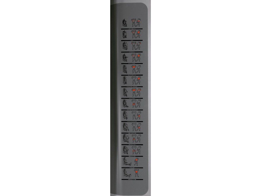 - obrázkový sprievodca cvikov priamo na kryte závažia