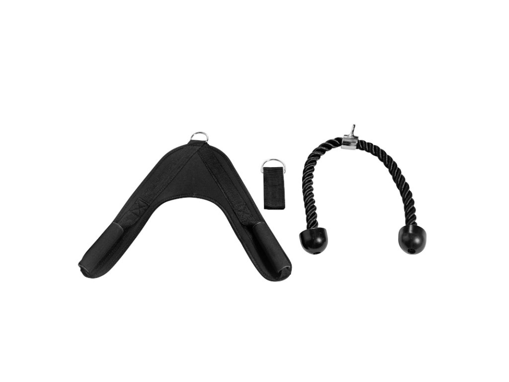 Všestrannosť posilňovača FORCE 500 je jednou z jeho silných stránok. K príslušenstvu patrí tricepsová tyč, multifunkčné lano a 40 cm trakčná tyč, čo umožňuje vykonávať širokú škálu cvikov. Medzi možnosti patria tricepsové tlaky, lat pull-downs, Pectoral Fly kríže, tlaky v sede, kladkové rady v sede, predný tlak, kopy nohami dozadu, vzpriamené rady, bicepsové zdvihy a brušné drepy. Okrem toho môžete vďaka penovým valcom s vysokou hustotou na členky efektívne trénovať svaly nôh pomocou cvikov, ako sú napríklad extenzie nôh a stojace skracovačky nôh. Každé cvičenie je navrhnuté tak, aby sa zapojili všetky hlavné svalové skupiny: hrudník, nohy, zadok, ruky, ramená a chrbát.