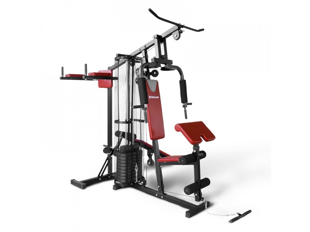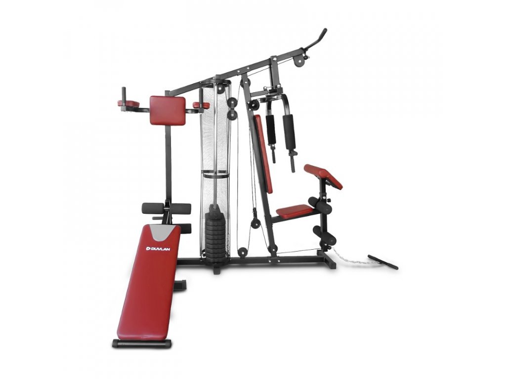 Multifunkčná posilňovacia veža DUVLAN Loki Vám umožní nájsť ideálnu cestu k posilňovaniu. Je určená ako pre začiatočníkov, tak aj pre menej náročnejších športovcov. V domácom prostredí si môžete kondične precvičiť a posilniť svaly celého tela. Vyznačuje sa robustnosťou, stabilitou, kvalitným polstrovaním a 65 kg závažím. Celý systém funguje na základe prekladkovania, takže už nemusíte zbytočne kupovať závažie. Hlavné stanovište umožňuje precvičovať svalové partie, ako sú nohy, prsné svaly, hrudník a biceps. Súčasťou posilňovacej veže Loki sú aj dve kladky. Spodnú kladku môžete využiť nielen na posilňovanie Vaších bicepsov, tricepsov a ramien, ale taktiež ju využijete ako simuláciu veslárskeho trenažéra. Pomocou hornej kladky zapojíte do cvičenia aj chrbtové a prsné svaly.