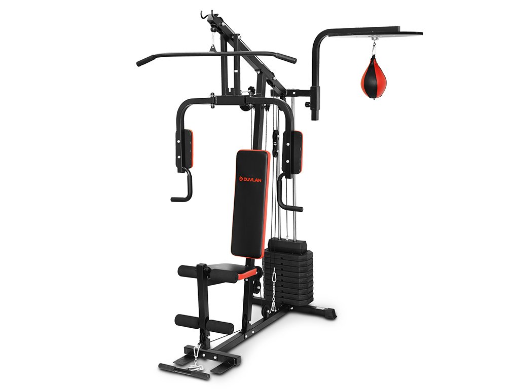 Posilňovacie veža DUVLAN Magni je unikátnou kombináciou klasickej posilňovacej veže a stojanom s boxovacou hruškou. Veža obsahuje 45kg závaží a adaptéry na hornú a spodnú kladku. Boxovacia hruška je umiestnená na výškovo nastaviteľnej plošine, takže si ju jednoducho prispôsobíte svojej výške.