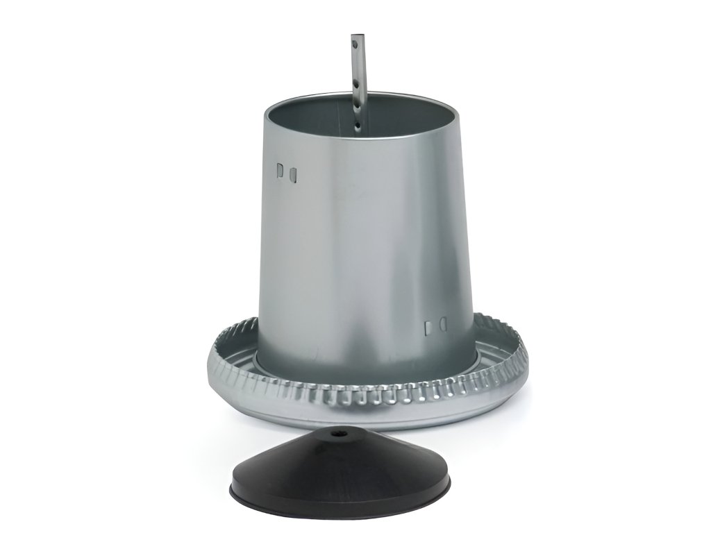 Kŕmiaci automat pre hydinu plechový 5 kg - pre kurčatá, sliepky, morky a ďalšiu hydinu, pozinkovaný plech, je možné zavesiť či postaviť, vrátane háčika na zavesenie. Priemer 300 mm, výška 260 mm.