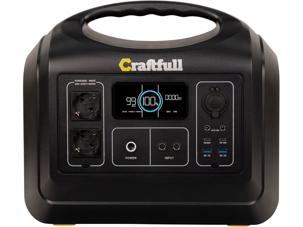 Systém off-grid vám poskytuje energiu, ktorú potrebujete, nech ste kdekoľvek. Craftfull Powerstation Adventure CP-1800 zaujme vysokým výkonom 1 800 wattov alebo 1488 Wh. Nielen, že svoje malé elektronické zariadenia nabijete niekoľkokrát, ale bez problémov obslúžite aj väčšie zariadenia ako je chladnička, rýchlovarná kanvica či dokonca televízor. Potrebné pripojenia od 230 voltových zásuviek po 12 voltovú zásuvku a niekoľko USB nabíjacích integrovaných zásuviek. Aby vám nikdy nedošla šťava, táto elektráreň zaujme tromi možnosťami nabíjania a extra rýchlym duálnym nabíjaním. A to nie je všetko: V spojení so solárnym panelom dosiahnete úplnú energetickú sebestačnosť. Dôverujte mobilnému napájaciemu zdroju od Craftfull!