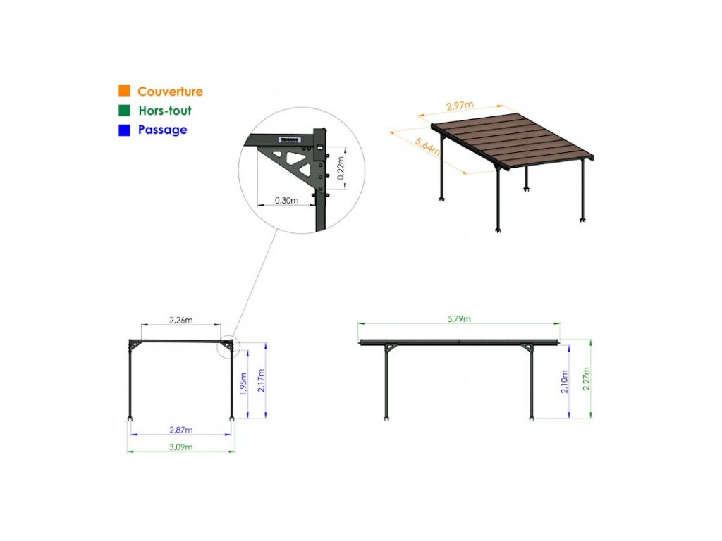 Prístrešok Alizé 16 bol navrhnutý tak, aby bol pevný a odolný. Ich vysoko kvalitné hliníkové stĺpiky a priečniky sú navrhnuté tak, aby ponúkali neporovnateľnú odolnosť voči korózii a búrkam až do rýchlosti 90 km/h! Strecha unesie až 10 cm utlačeného a mokrého snehu, t.j. zaťaženie 40 kg/m². Lakovanie všetkých konštrukčných prvkov má zrnitú štruktúru, ktorá zabraňuje korózii niekoľkých oceľových častí a vzniku škrabancov. Súčasťou sú nerezové skrutky a upevňovacie prvky na ukotvenie do zeme. Dažďová voda je účinne odvádzaná pomocou tyčí umiestnených v spodnej časti sklonu strechy, aby sa mikroúlomky nedostali do polykarbonátových dosiek a nenarušili ich krásny vzhľad degradáciou. Navrhnuté a vyrobené vo Francúzsku.