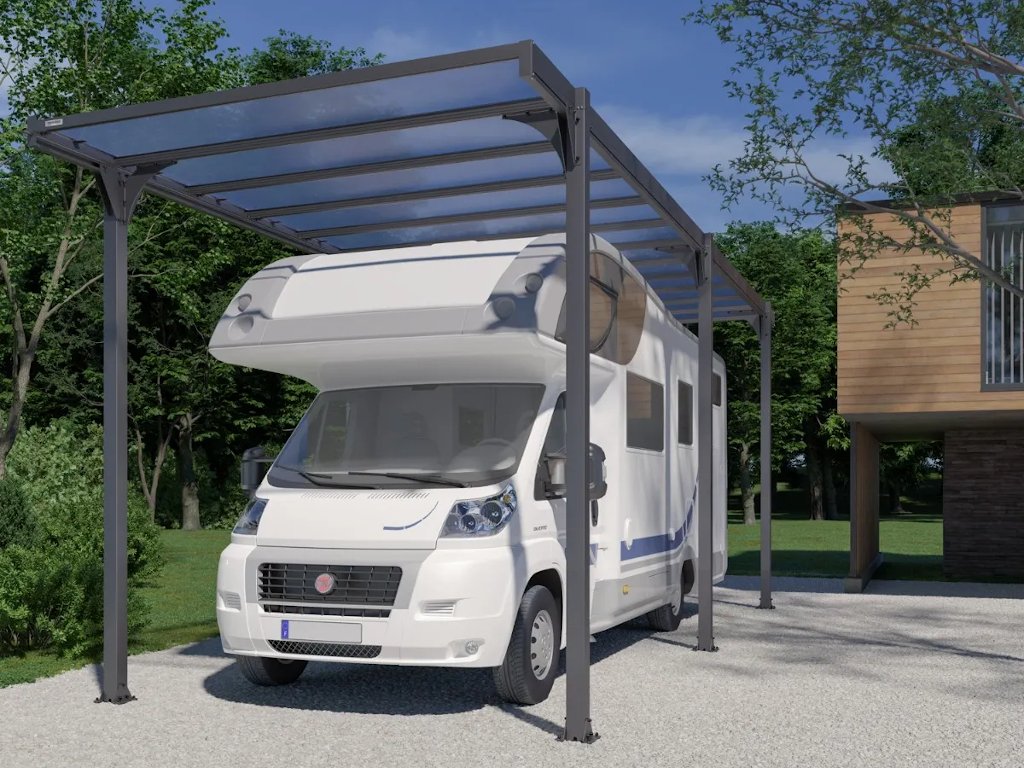Prístrešky pre autá Hegoa 25 sú aj estetické. Ich striedme línie a antracitovo šedá farba sú moderné, ale dostatočne neutrálne, aby sa hodili ku všetkým exteriérom, či už súčasným, klasickým, art deco...