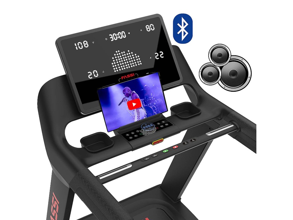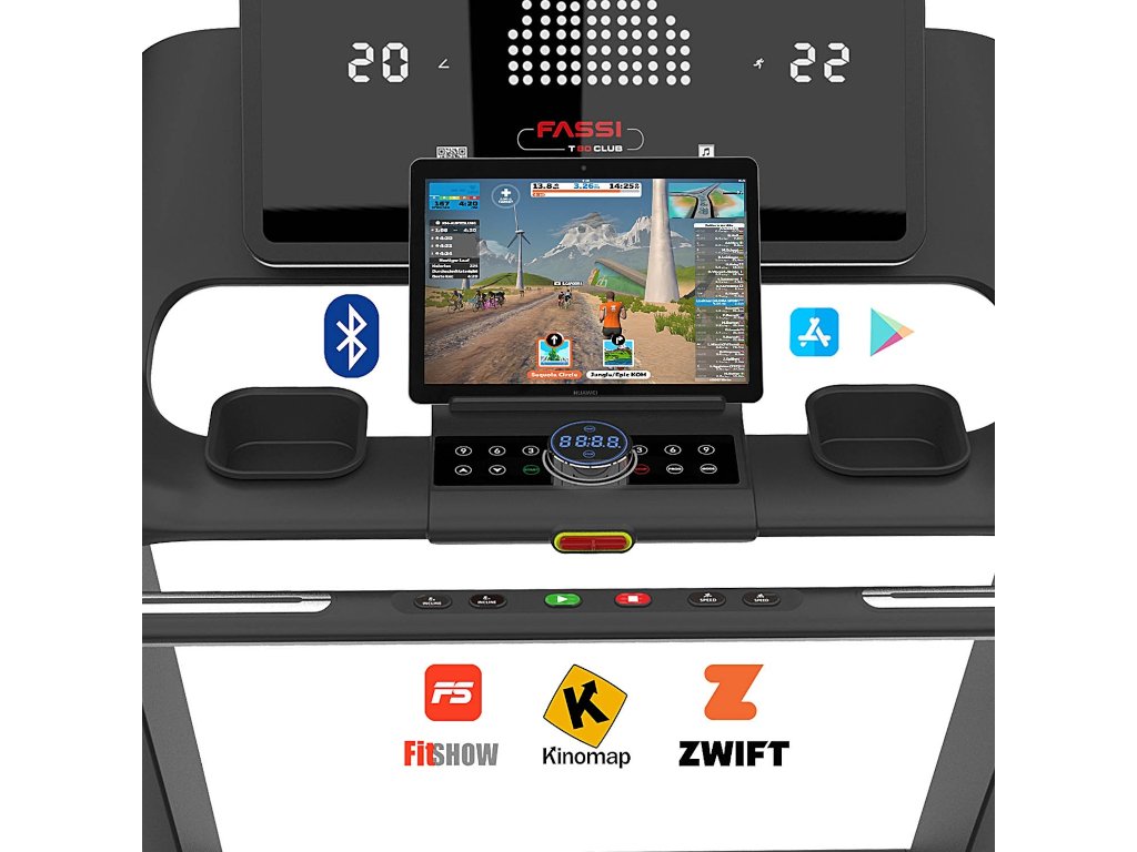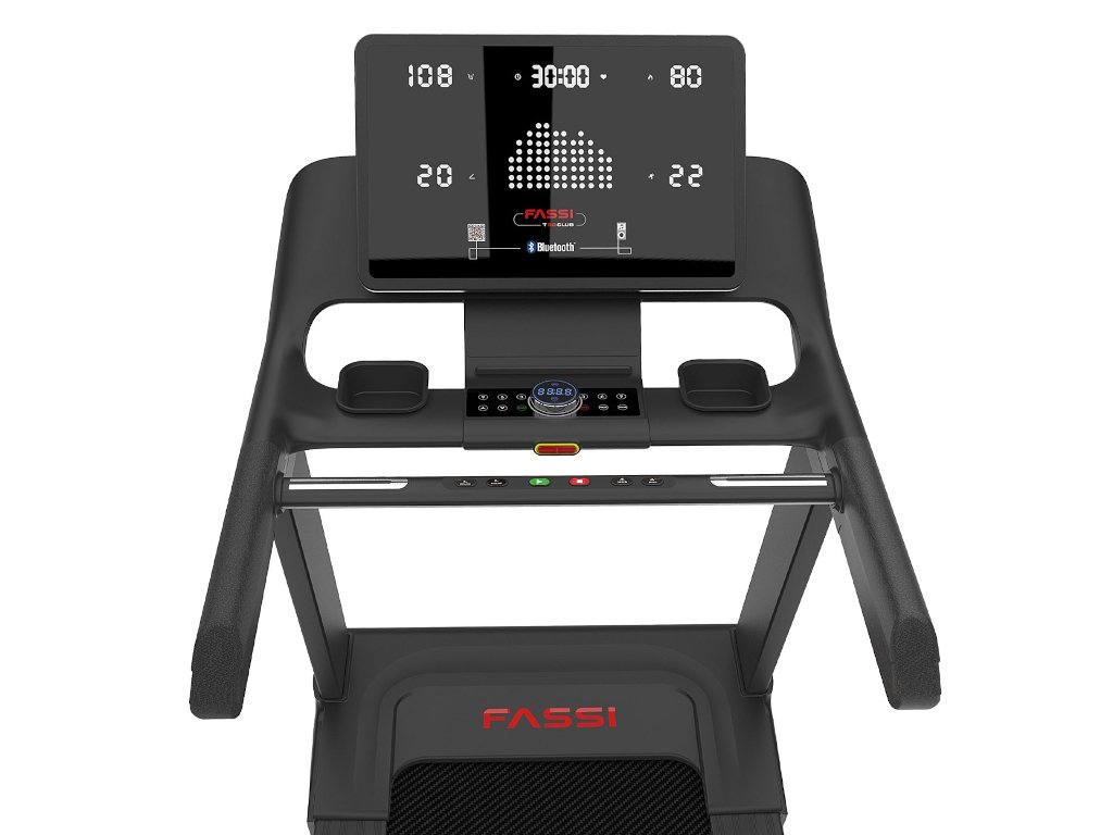 Fassi T80 je vybavený veľkým 6-okienkovým LED dotykovým displejom, vďaka ktorému je sledovanie hlavných údajov ako rýchlosť, vzdialenosť, kalórie, srdcový tep a čas jednoduché a intuitívne. Rôznorodosť programov je jednou zo silných stránok tohto bežiaceho pásu: k dispozícii je 29 tréningových programov, z ktorých 20 zahŕňa variácie rýchlosti a sklonu, ako aj 3 cieľové programy a 3 programy HRC (Heart Rate Control), ktoré regulujú automaticky intenzitu tréningu na základe vašej tepovej frekvencie, aby ste zaistili bezpečný tréning prispôsobený vašim potrebám. Okrem toho kompatibilita s aplikáciami FitShow, Kinomap a Zwift ponúka pohlcujúci a prispôsobený tréningový zážitok, ktorý vám umožní pripojiť sa k virtuálnym trasám a sledovať váš pokrok v priebehu času.