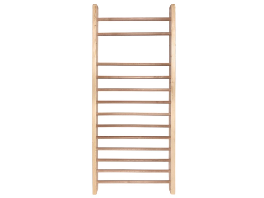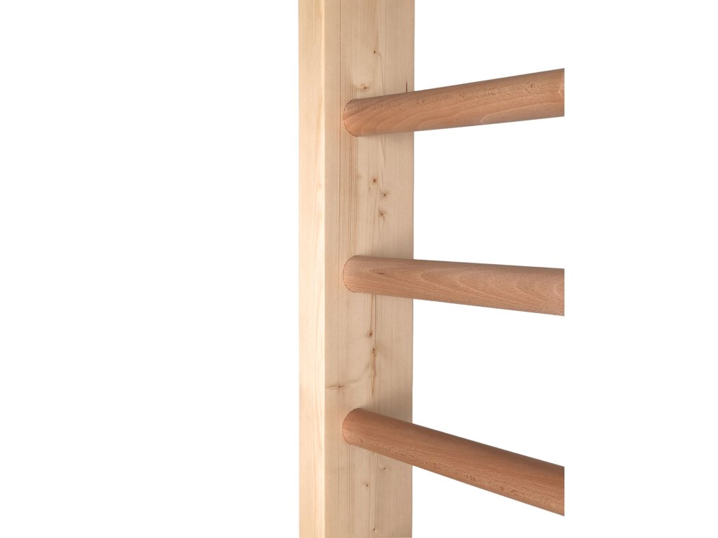 Pevná konštrukcia z borovicového dreva a tyče z bukového dreva zvládnu záťaž až 200 kg. Rebriny sú vhodné na domáce posilňovanie, strečing aj rehabilitačné cvičenia pre dospelých.