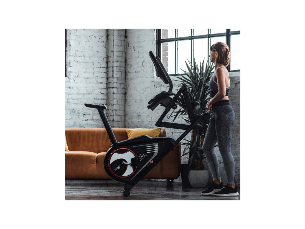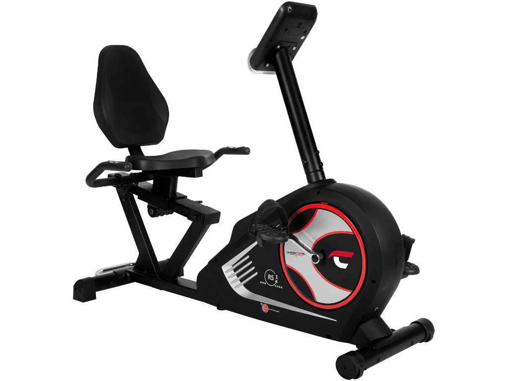 Recumbent RS3 je stabilný ergometer, vybavený magnetickým brzdným systémom a tichým pohonom. Užívateľ si môže elektronicky vybrať z 24 stupňov záťaže a 10 tréningových programov. Sedadlo je horizontálne nastaviteľné pomocou ovládacej páky, takže je možné nastaviť individuálnu tréningovú polohu ktorá vám vyhovuje. Protišmykové pedále so samostatným bezpečnostným pásom zaisťujú stabilnú polohu chodidiel pri šliapaní. Svoj výkon si môžete pozrieť na veľkom podsvietenom LCD displeji, kt. je vybavený držiakom na tablet alebo váš smartphone. Transportné kolieska umožňujú jednoduché premiestnenie stroja.