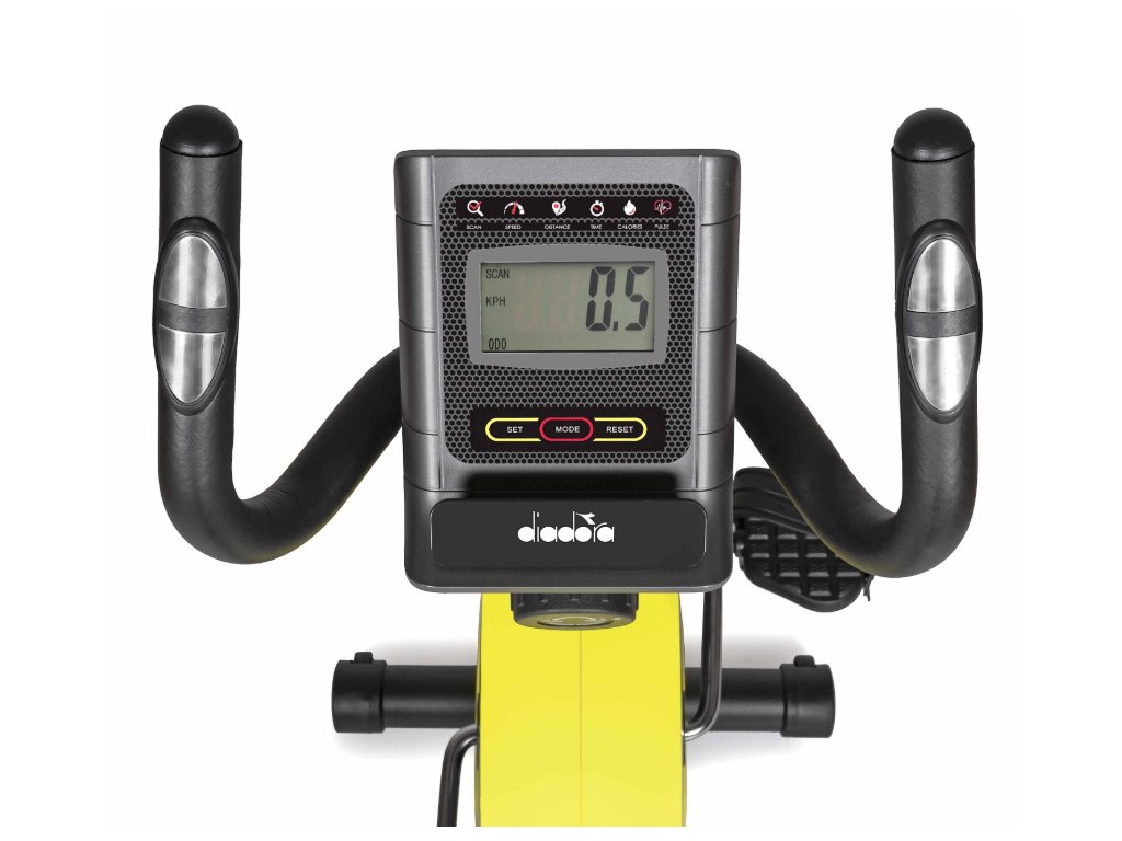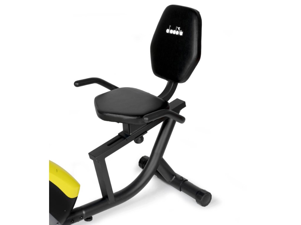 Diadora Galaxy Comfort je praktický a ľahko ovládateľný recumbent. Vďaka ergonomickému sedadlu je ideálny na dlhé šliapanie bez toho, aby chrbát príliš trpel. Kombinuje pohodlie a fitness, vďaka čomu je tréning príjemnejší. Užívateľ má k dispozícii 8 úrovní odporu výsledky ktorých môže sledovať na LCD displeji. Konzola je navrhnutá tak, aby mala pohodlný držiak na tablet. Transportné kolesá stroj ľahko presunú tam, kam budete potrebovať.