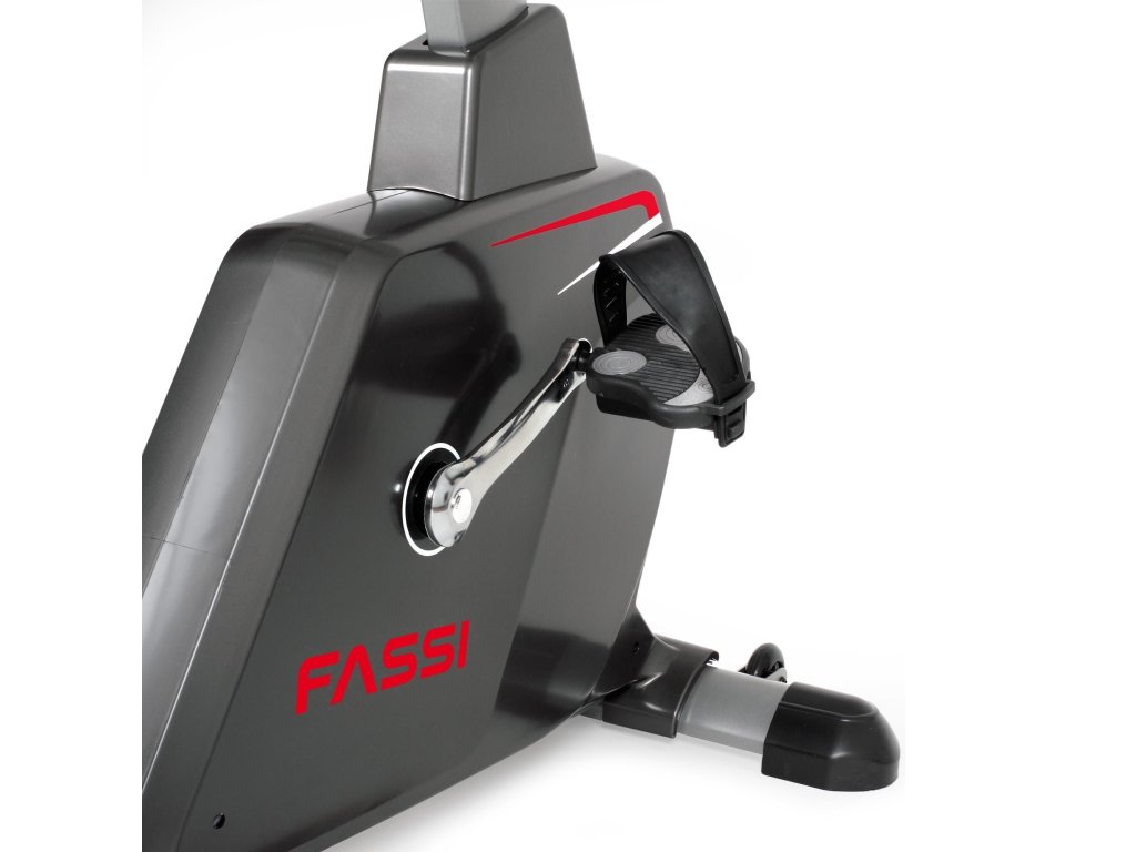 Fassi FR 300 je poloprofesionálny elektromagnetický recumbent. Jeho komfortné široké sedadlo a obojstranné operadlo umožňujú ešte menej zaťažovať kĺby. Intenzita tréningu je nastaviteľná v 16 rôznych úrovniach, ktoré môžete kedykoľvek sledovať vďaka výkonnému počítaču, ktorý je vybavený niekoľkými základnými tlačidlami. Pomocou tlačidla si môžete vybrať medzi 7 programami odporu, prispôsobiteľným programom a 3 cieľovými programami. Na podsvietenom LCD monitore máte pod kontrolou čas, vzdialenosť, rýchlosť, spotrebu kalórií a tepovú frekvenciu, pomocou srdcových ručných detektorov umiestnených v rukovätiach.