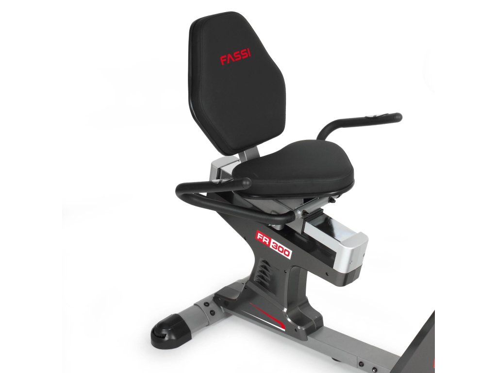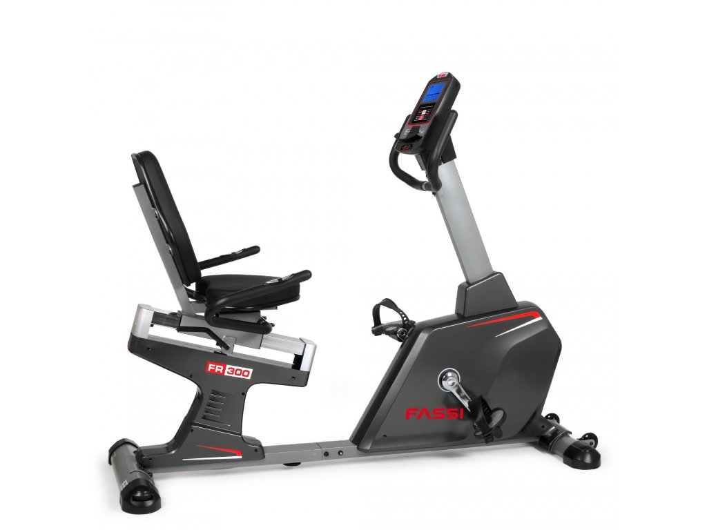 Fassi FR 300 je poloprofesionálny elektromagnetický recumbent. Jeho komfortné široké sedadlo a obojstranné operadlo umožňujú ešte menej zaťažovať kĺby. Intenzita tréningu je nastaviteľná v 16 rôznych úrovniach, ktoré môžete kedykoľvek sledovať vďaka výkonnému počítaču, ktorý je vybavený niekoľkými základnými tlačidlami. Pomocou tlačidla si môžete vybrať medzi 7 programami odporu, prispôsobiteľným programom a 3 cieľovými programami. Na podsvietenom LCD monitore máte pod kontrolou čas, vzdialenosť, rýchlosť, spotrebu kalórií a tepovú frekvenciu, pomocou srdcových ručných detektorov umiestnených v rukovätiach.