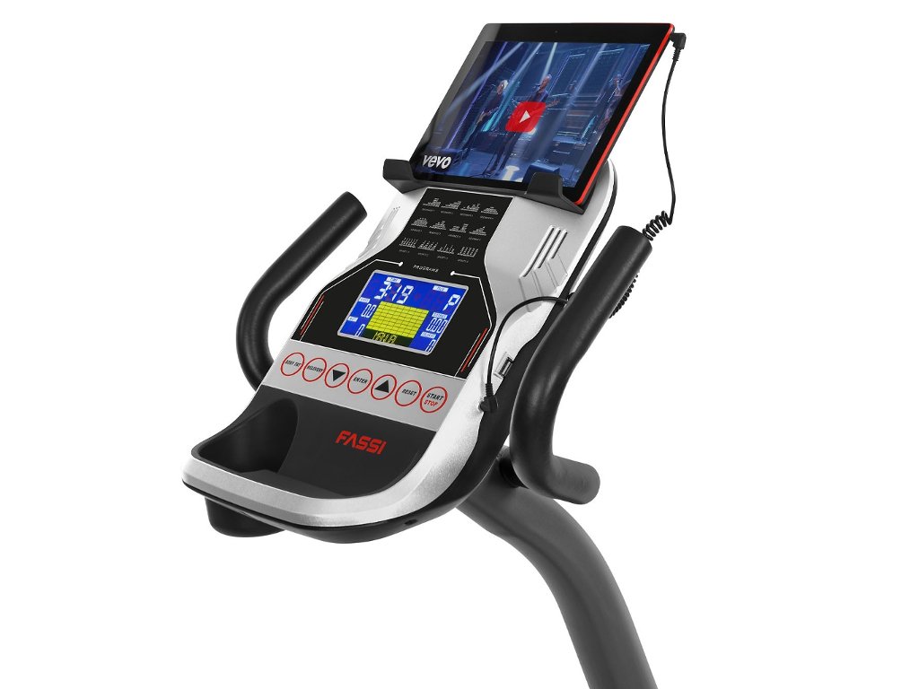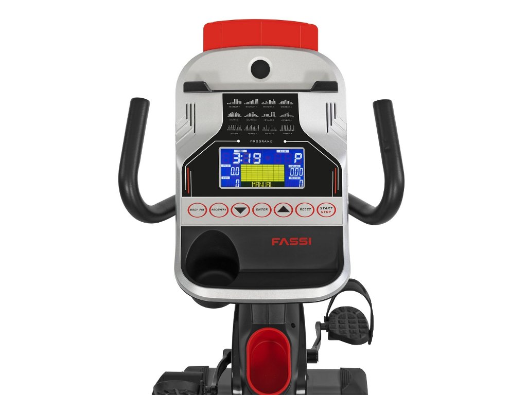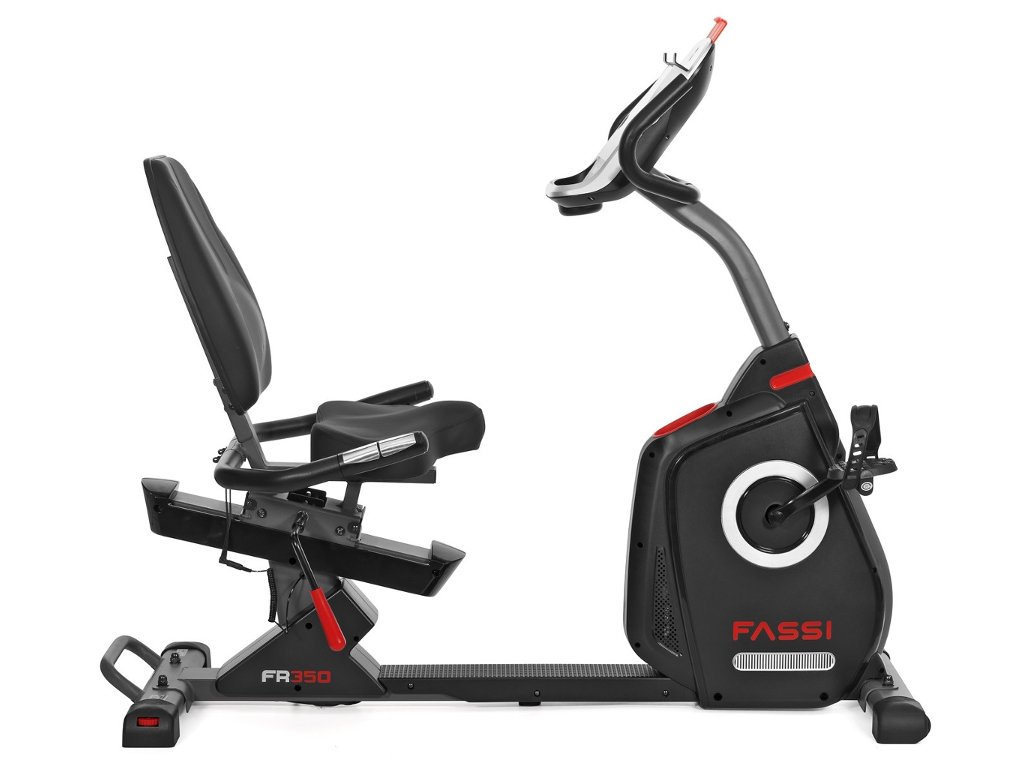 Elegantný, pohodlný, výkonný a tichý. To je nový Recumbent Fassi FR 350. Recumbent kombinuje profesionalitu a inovatívny dizajn s jedinečným počítačom. Veľký dvojfarebný podsvietený LCD display vám umožní ľahko čítať základné hodnoty vášho tréningu. Elektromagnetické nastavenie záťaže na 32 úrovniach spolu s integrovaným Bluetooth a aplikáciou Kinomap APP vám ponúknu jedinečný pocit pri tréningu. Počítač je kompatibilný s bezdrôtovým srdcovým prijímačom Polar, ktorý je možné pripojiť k srdcovému pásu, mp3 a reproduktoru, USB nabíjačkou. Robustný a elegantný vďaka nastaviteľnému sedadlu. Je vhodný pre akúkoľvek výšku a pre užívateľov s hmotnosťou až 150 kg.
