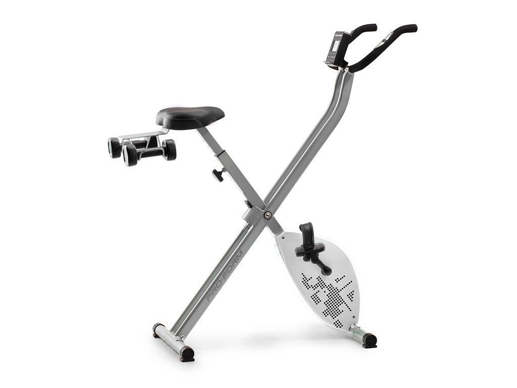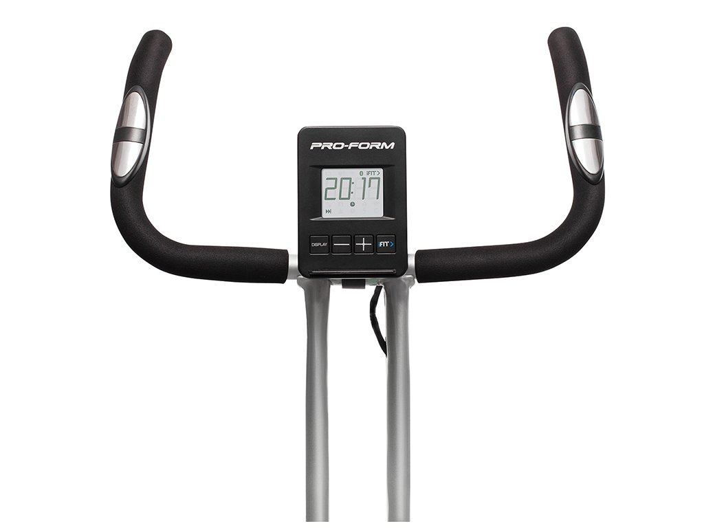 PRO-FORM PF X-Bike je vybavený podsvieteným 3“ LCD displejom, ktorý prezentuje všetky dôležité tréningové informácie ako je dĺžka cvičenia, rýchlosť, spálené kalórie, prejdená vzdialenosť, frekvencia otáčok a tepová frekvencia, ktorá je snímaná cez tzv. „hand pulzy“ , čiže dlaňové senzory umiestnené na madlách. Na oživenie monotónnej jazdy je stroj vybavený aj párom kilogramových činiek, vďaka ktorým posilníte, pretiahnete alebo prípadne len podporíte správnu funkciu paží.