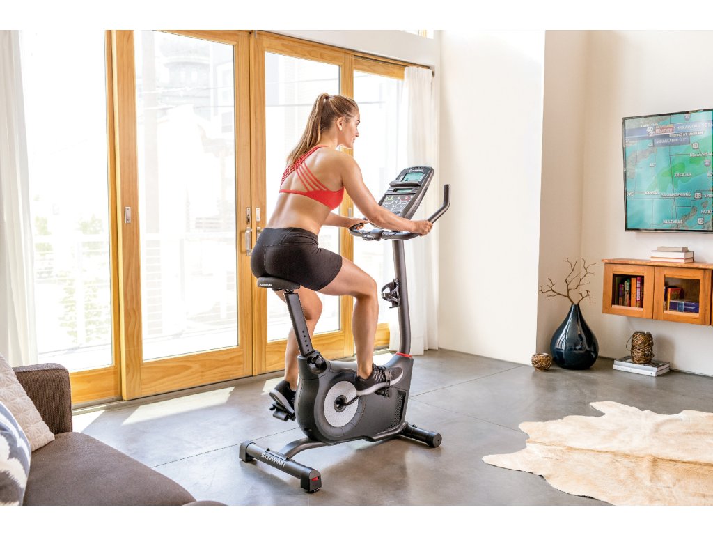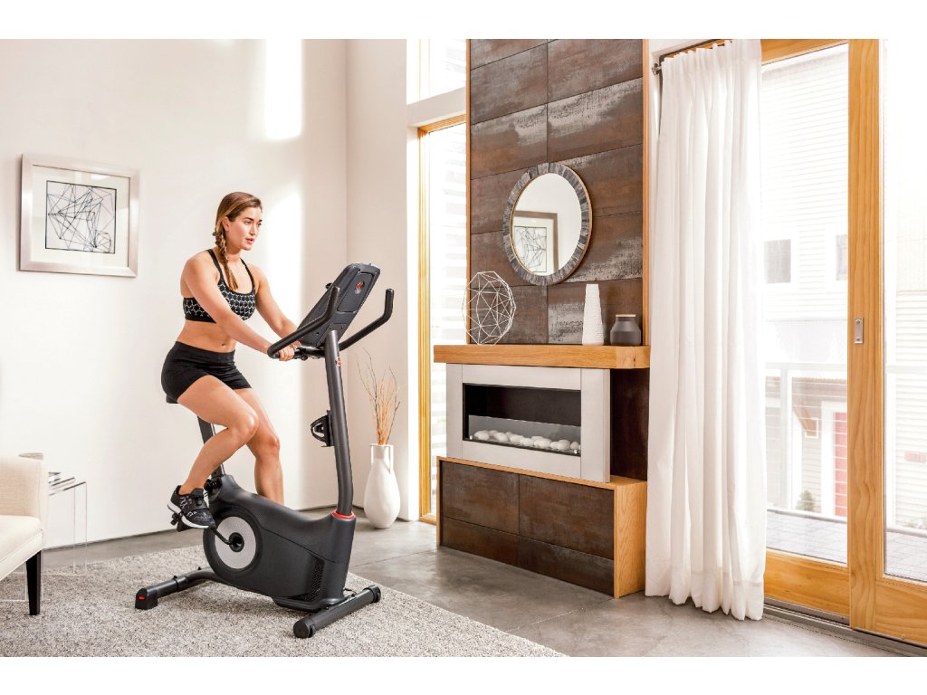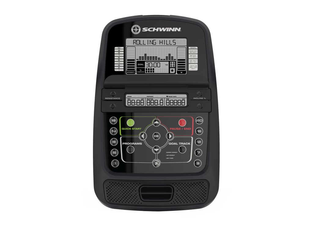 Vybrať si môžete zo širokej palety tréningových programov až z 20 stupňov záťaže. Na riadiacej konzole je držiak na tablet, mobil alebo časopis. Veľmi užitočným prvkom je, že riadiaca konzola má dva LCD displeje. Na vrchnom displeji sa zobrazujú programy a záťaž. Na spodnom sa zobrazujú vaše tréningové hodnoty: rýchlosť, čas, vzdialenosť, kalórie, počet otáčok za minútu a pulz. Takže aj keď počas tréningu sledujete na tablete film, na spodnom displeji môžete sledovať údaje o cvičení. Ďalšou užitočnou vlastnosťou rotopedu Schwinn 130i je, že riadidlá majú nastaviteľný uhol sklonu, čo umožňuje nájsť si tú správnu polohu na tréning.