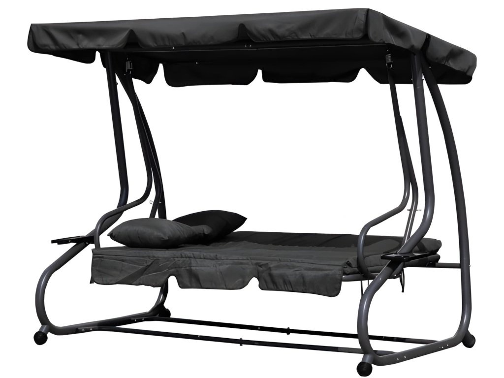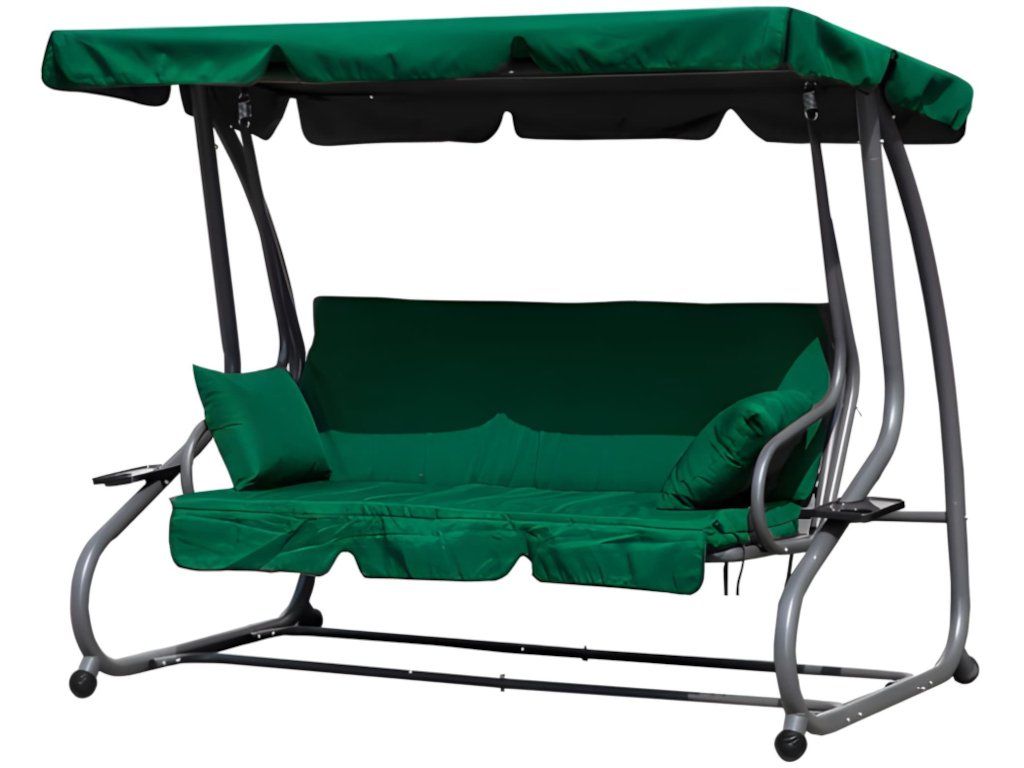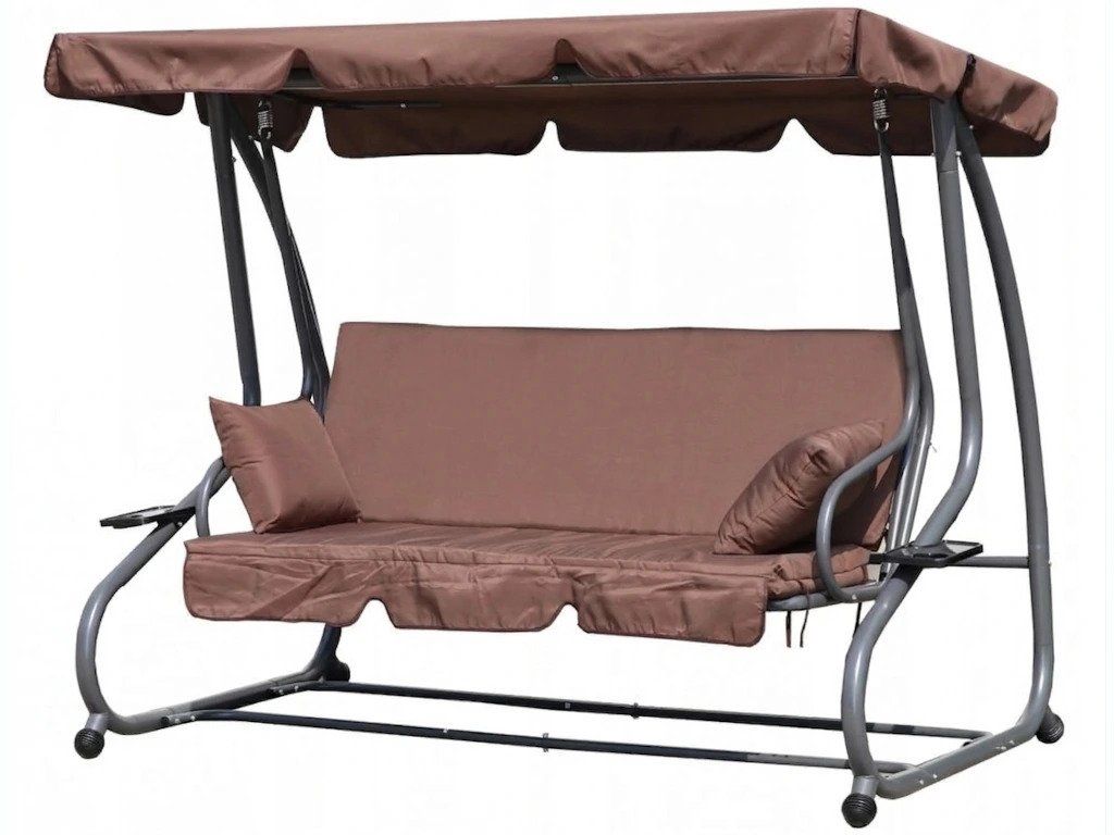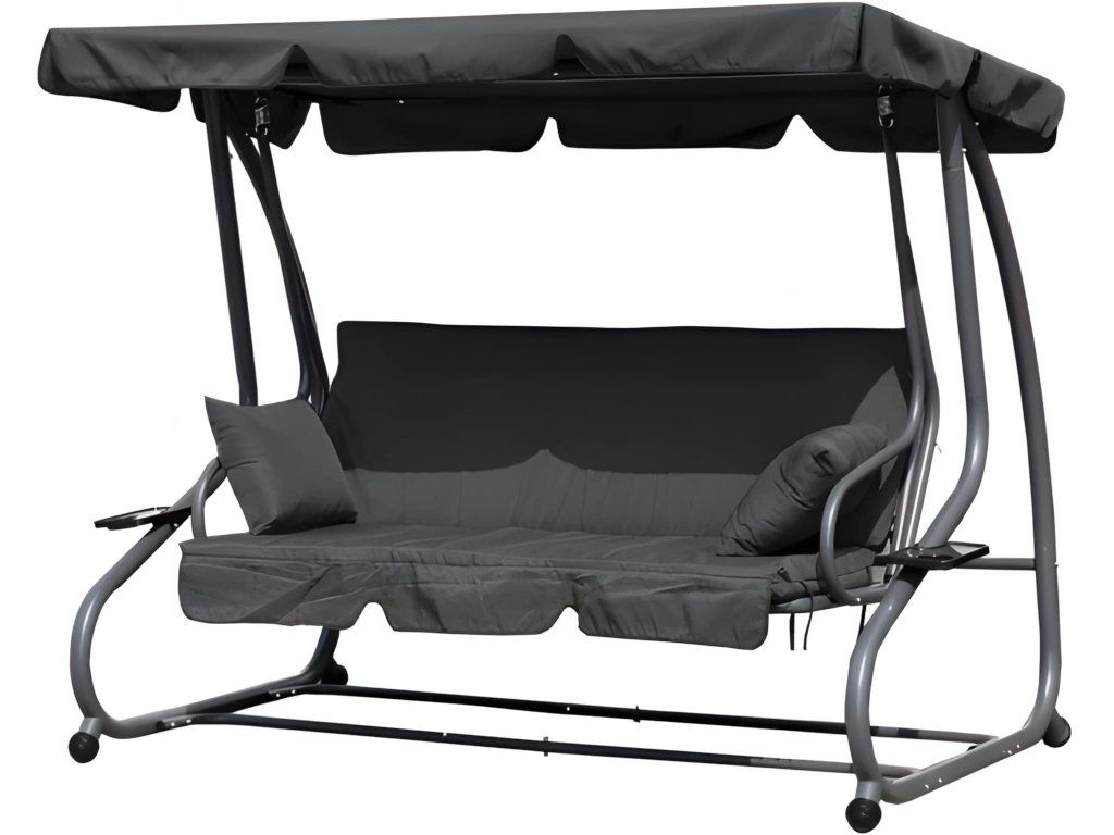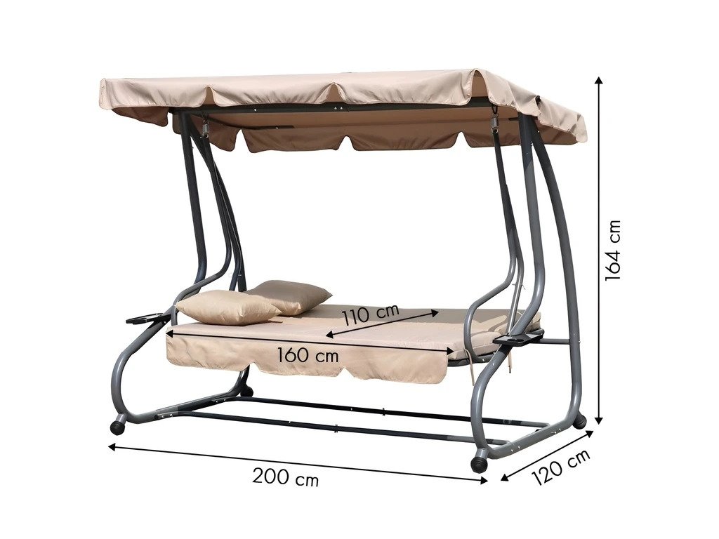 Táto záhradná hojdačka je perfektnou voľbou pre každú domácu záhradu. Vďaka modernému dizajnu a možnosti sklápania je pohodlným miestom pre tri osoby. Dodáva sa s mäkkým matracom a dvoma vankúšmi a jej maximálna nosnosť je 300 kg. Odolný oceľový rám hojdačky je odolný voči poveternostným vplyvom. Okrem toho má dva praktické držiaky na nápoje a občerstvenie a nastaviteľnú striešku s ozdobným volánikom pre väčšie pohodlie.
