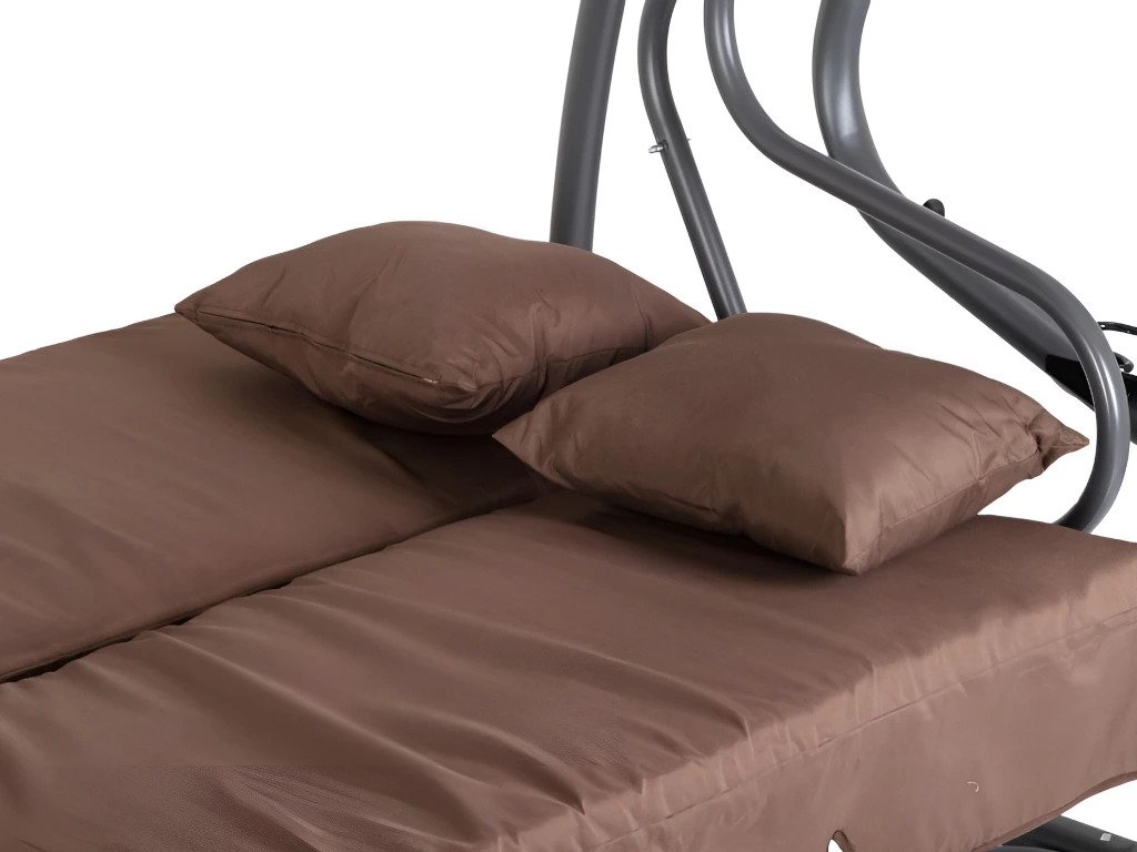 Súčasťou balenia je komplet celá hojdačka so strieškou, sedákom a vankúšmi.