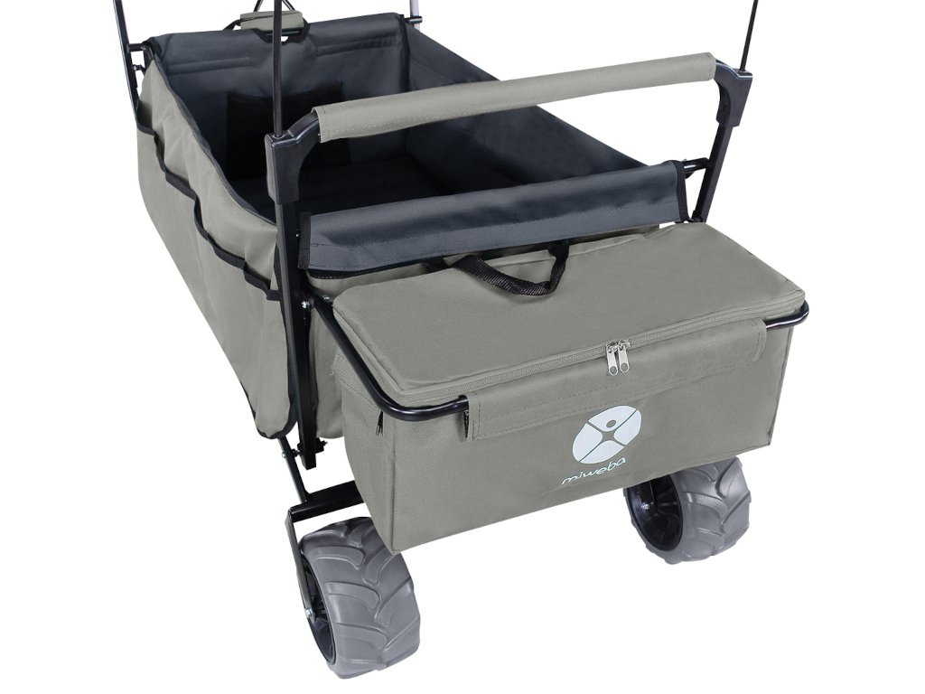 Výlety s rodinou alebo priateľmi zvyčajne zahŕňajú veľa drobností. Opaľovací krém, nealko nápoj, malé občerstvenie na posilnenie a mnoho ďalšieho. Žiaden problém! Pretože ručný vozík Miweba MB-10 je skutočným skladovacím zázrakom. Skladovanie uľahčuje prepravná taška, vrecko na zadnej strane a vrecká na nápoje. Všetky odkladacie priestory sú v ručnom vozíku ľahko dostupné.