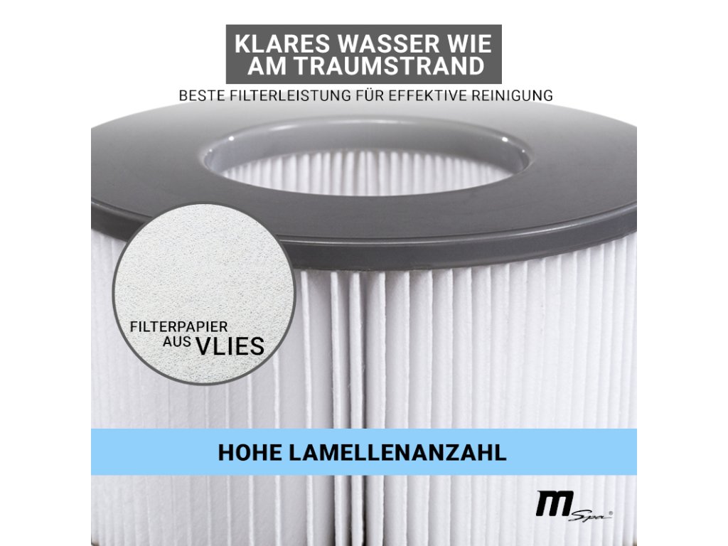 Potrebujete nový filter do vírivky? Náš filter MSpa účinne čistí vodu z kúpeľa. To je dosiahnuté kvalitným filtračným papierom a veľkým počtom lamiel.