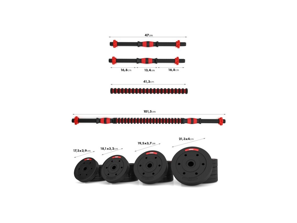 kotúče: 4 x 1,25 kg, 4 x 1,5 kg, 4 x 2 kg, 4 x 2,5 kg