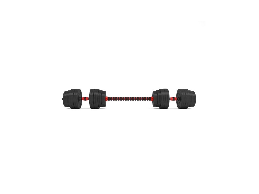 Kotúče sú vyrobené z tvrdého plastu, ktorý je vyplnený cementom. Obojručná os je spojovacím dielom, do ktorého sa našróbujú hriadeľe jednoručných činiek. Nakladacie tŕne sú opatrené závitom a závažia sa zabezpečujú pomocou hviezdicových matíc.