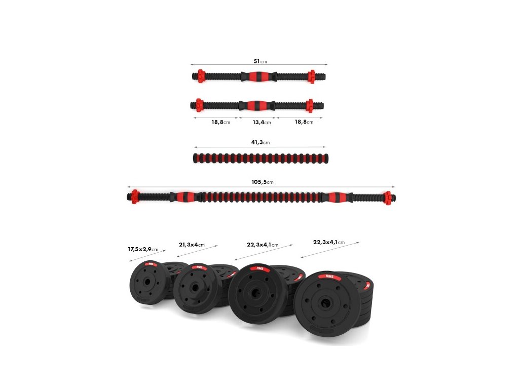 kotúče: 4 x 1,25 kg, 4 x 2,5 kg, 8 x 3 kg