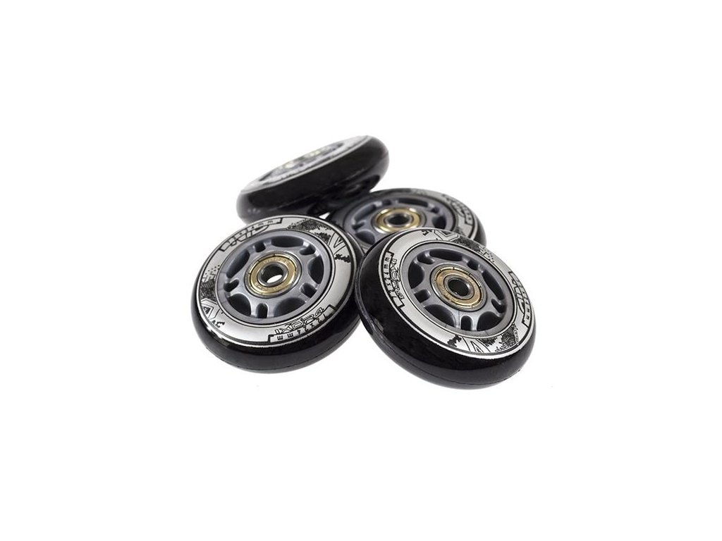 Náhradná sada koliesok veľkosti 70 x 24 mm čiernej farby a tvrdosťou 82 A s ložiskami ABEC 9.