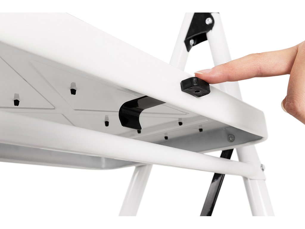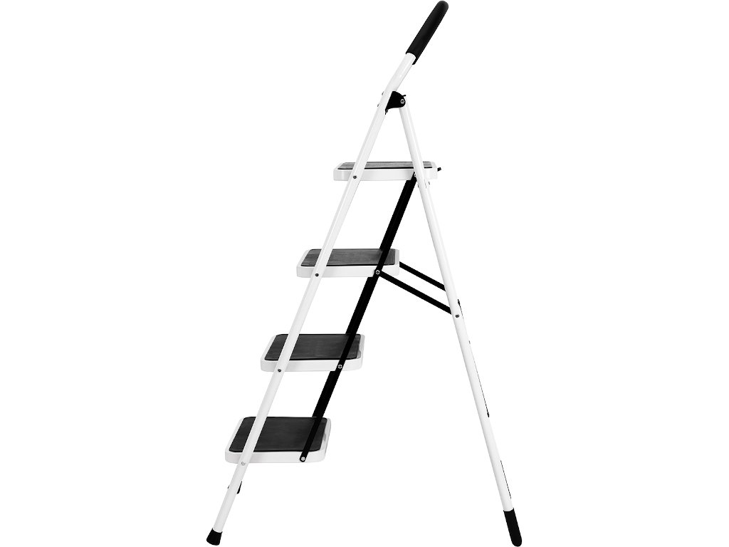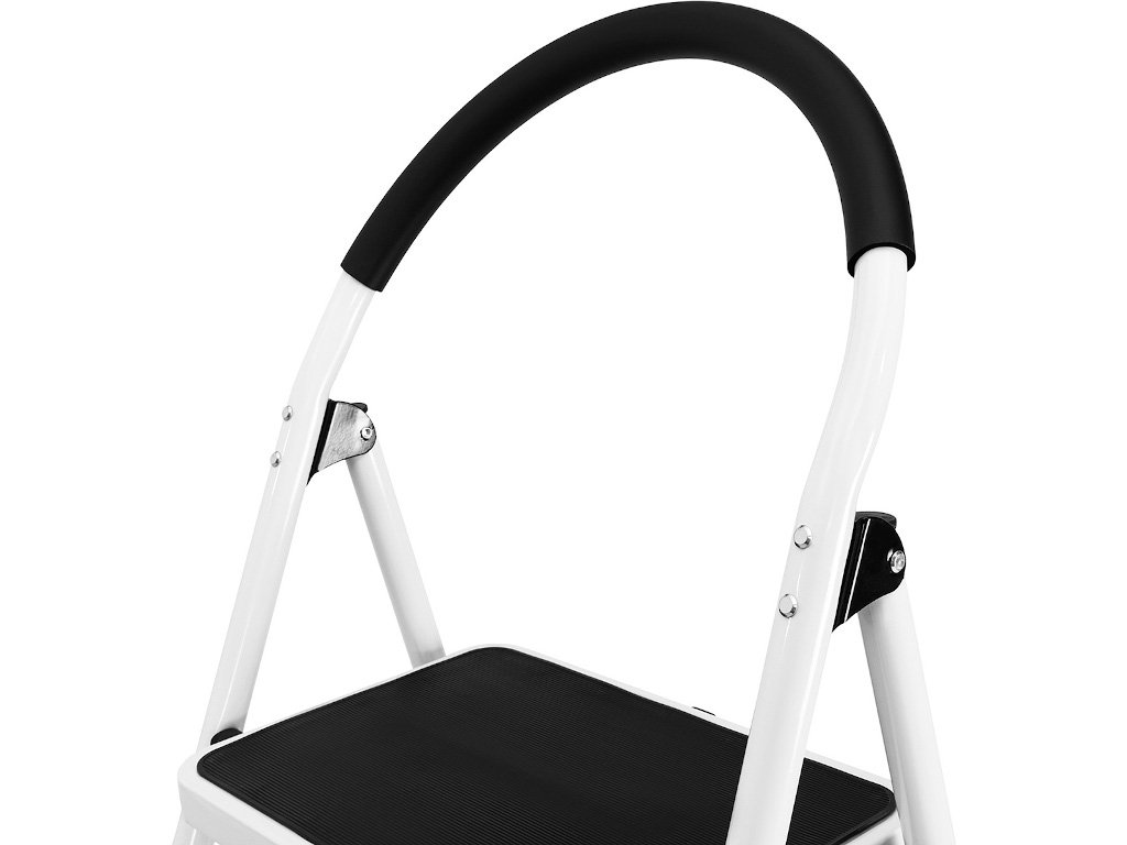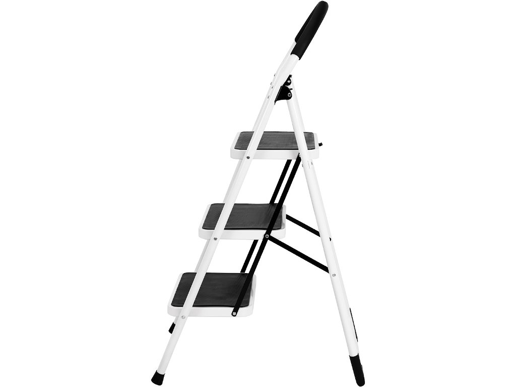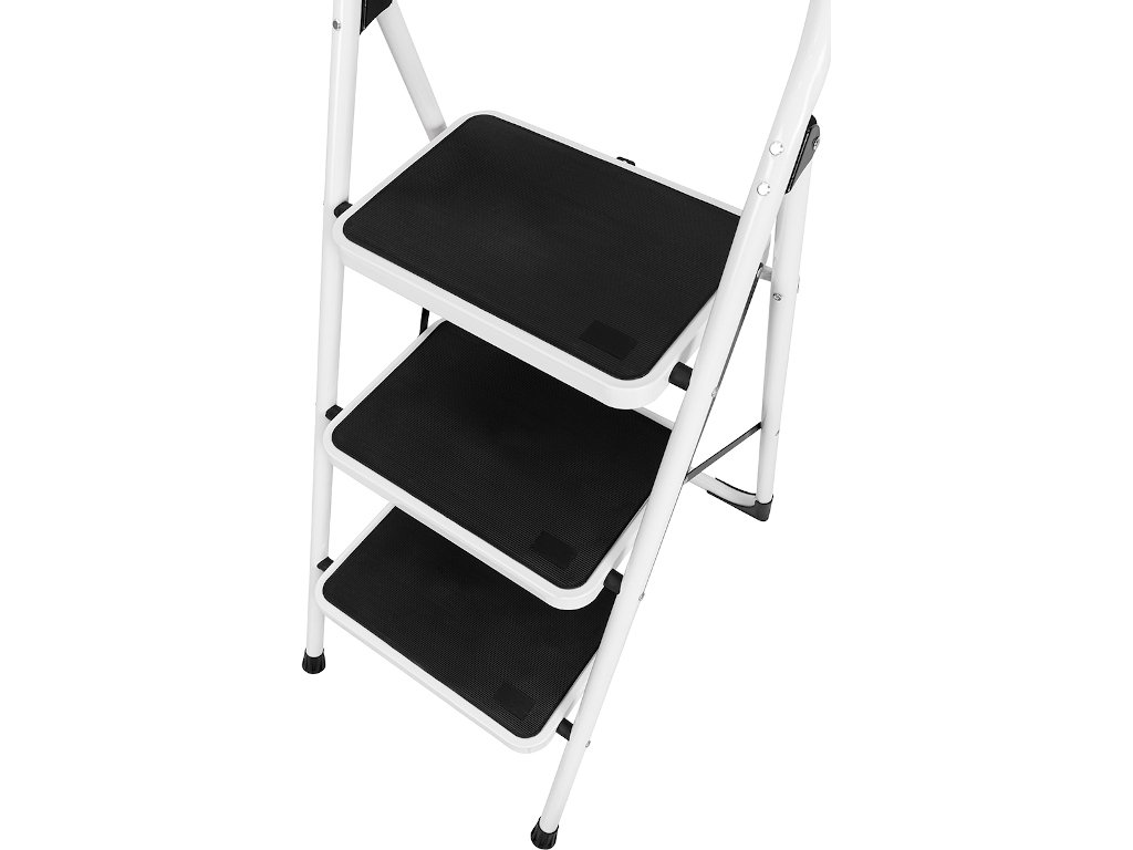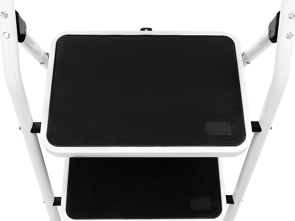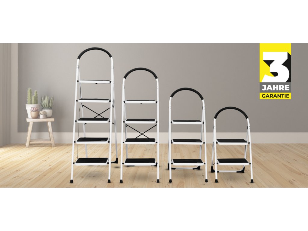 Rebrík prichádza v modernej kombinácii bielej a čiernej. Vďaka tomu je oveľa atraktívnejší ako bežné pracovné rebríky.