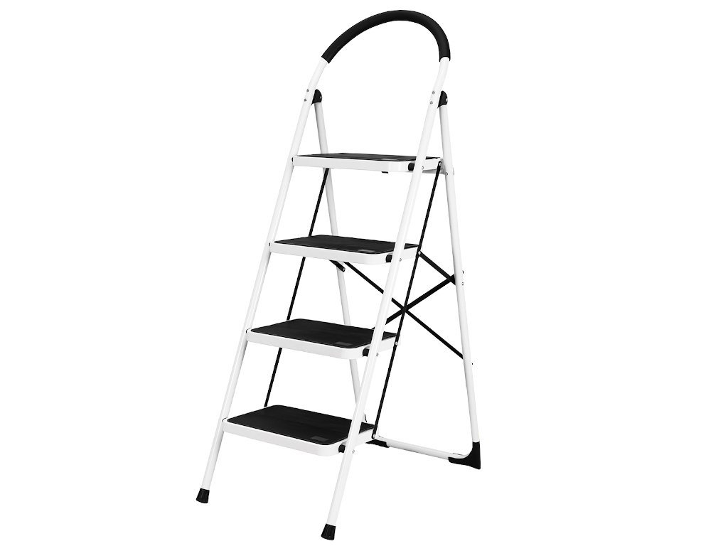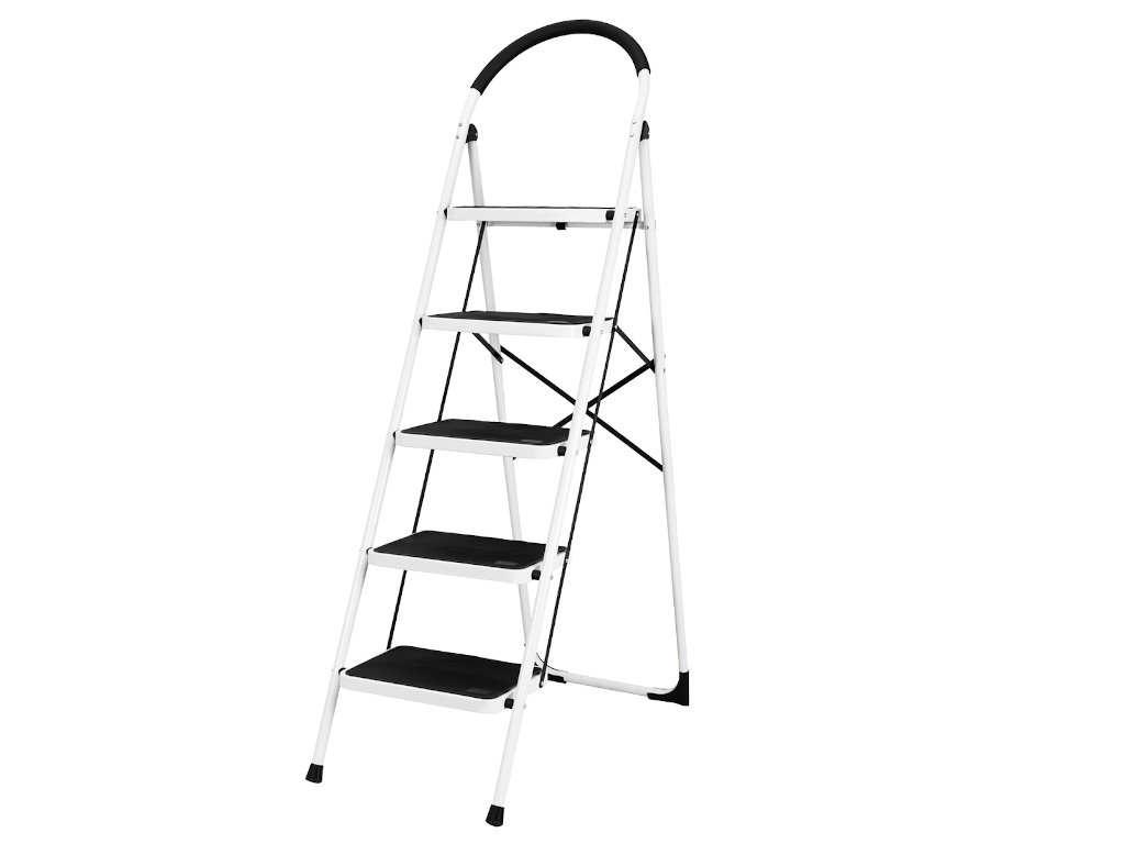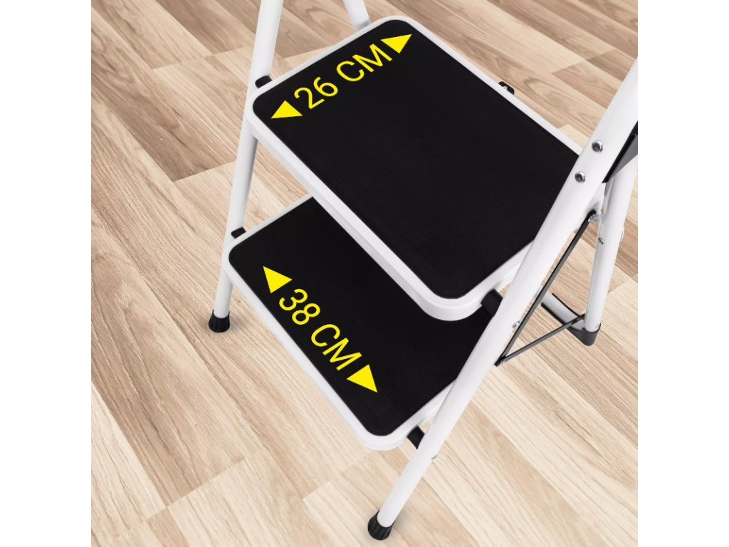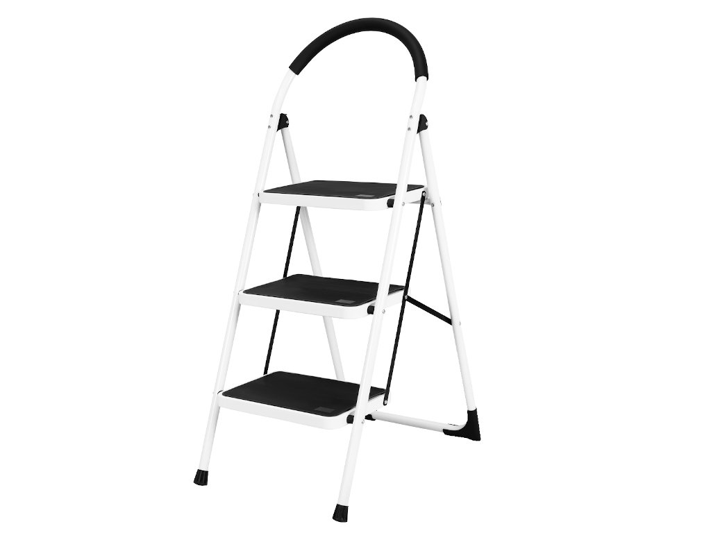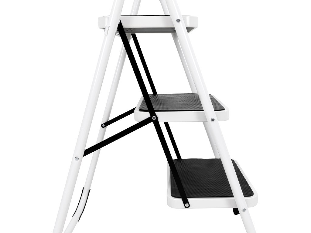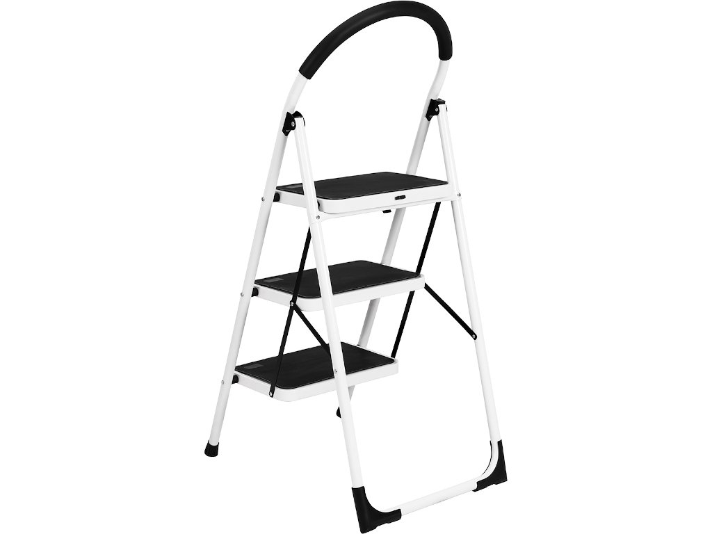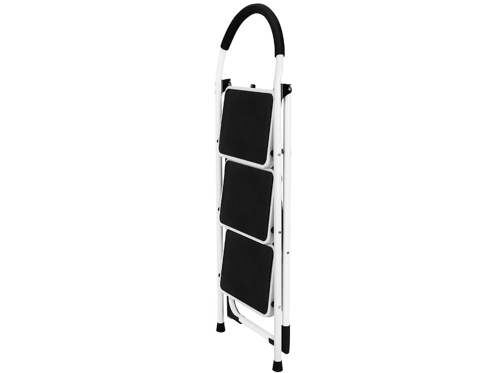 Skladací rebrík v bielej a čiernej farbe