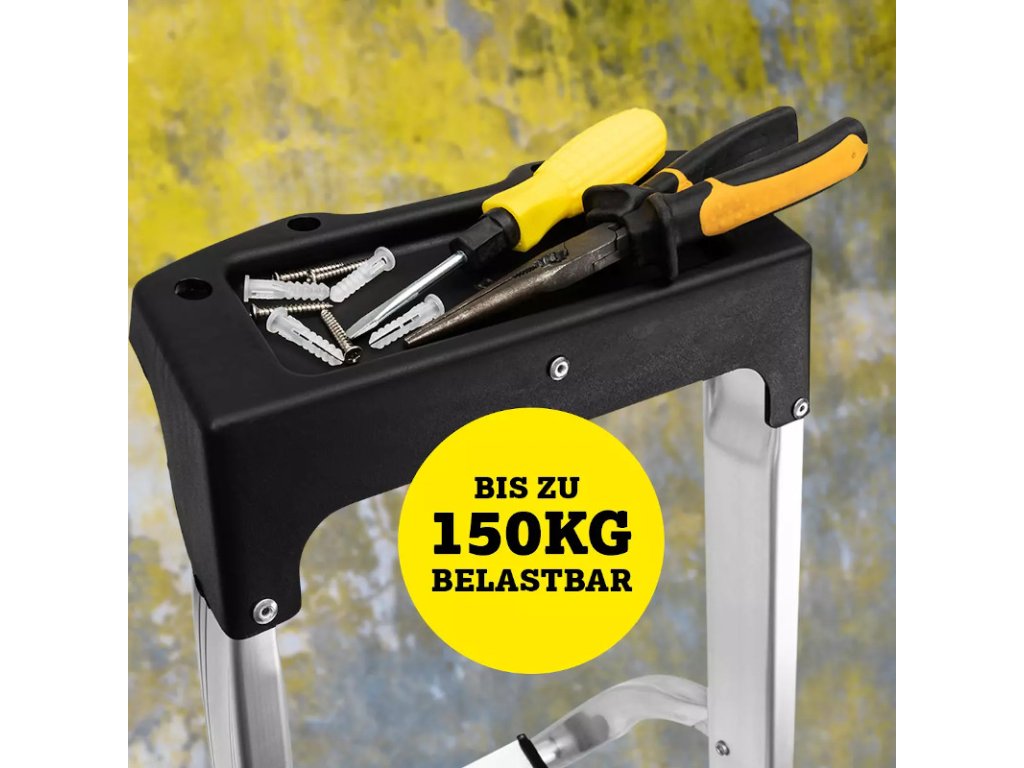 Vďaka vysokokvalitnému hliníku je rebrík pre domácnosť robustný, stabilný a ľahký. Dá sa rýchlo a bez väčšej námahy preniesť na ďalšie miesto použitia. Navyše presvedčí svojimi vlastnosťami odolnými voči poveternostným vplyvom. Hliníkový rebrík môžete bez váhania nechať vonku v daždi. Jednoducho sa čistí. Robustný protišmykový povrch a pogumované nožičky vám poskytnú potrebnú oporu a ochranu. Rebrík má na extra polici dostatok miesta pre všetky druhy náradia.