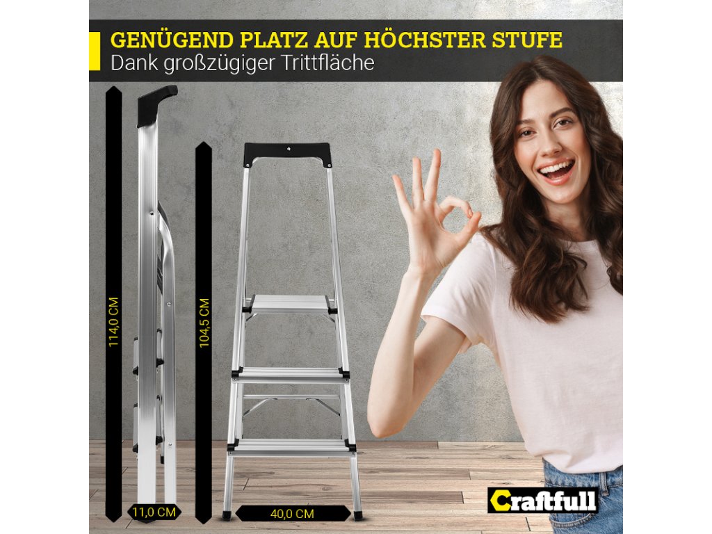 Chcete sa spoľahnúť na svojho každodenného pomocníka? Trojročná záruka zaručuje, že rebrík Craftfull CF-133B má vysoké štandardy kvality. To znamená, že budete mať po dlhú dobu spoľahlivý rebrík do domácnosti, ktorý zaujme prvotriednym spracovaním a robustnou konštrukciou. Najmä pri práci vo výškach platí: musí byť zaručená odolnosť a bezpečnosť.